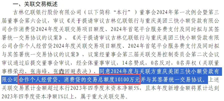 此前都是合作的消费贷和经营贷统一审议额度、签署交易协议——2023年为不超过5.88亿元;2024年为不超过1.01亿元。