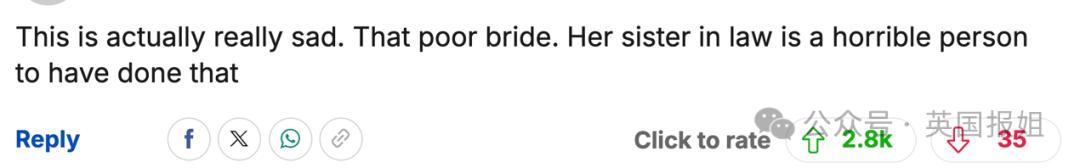 “这也太悲催了,那位可怜的新娘。她嫂子做了那种事,是个太糟糕的人。”