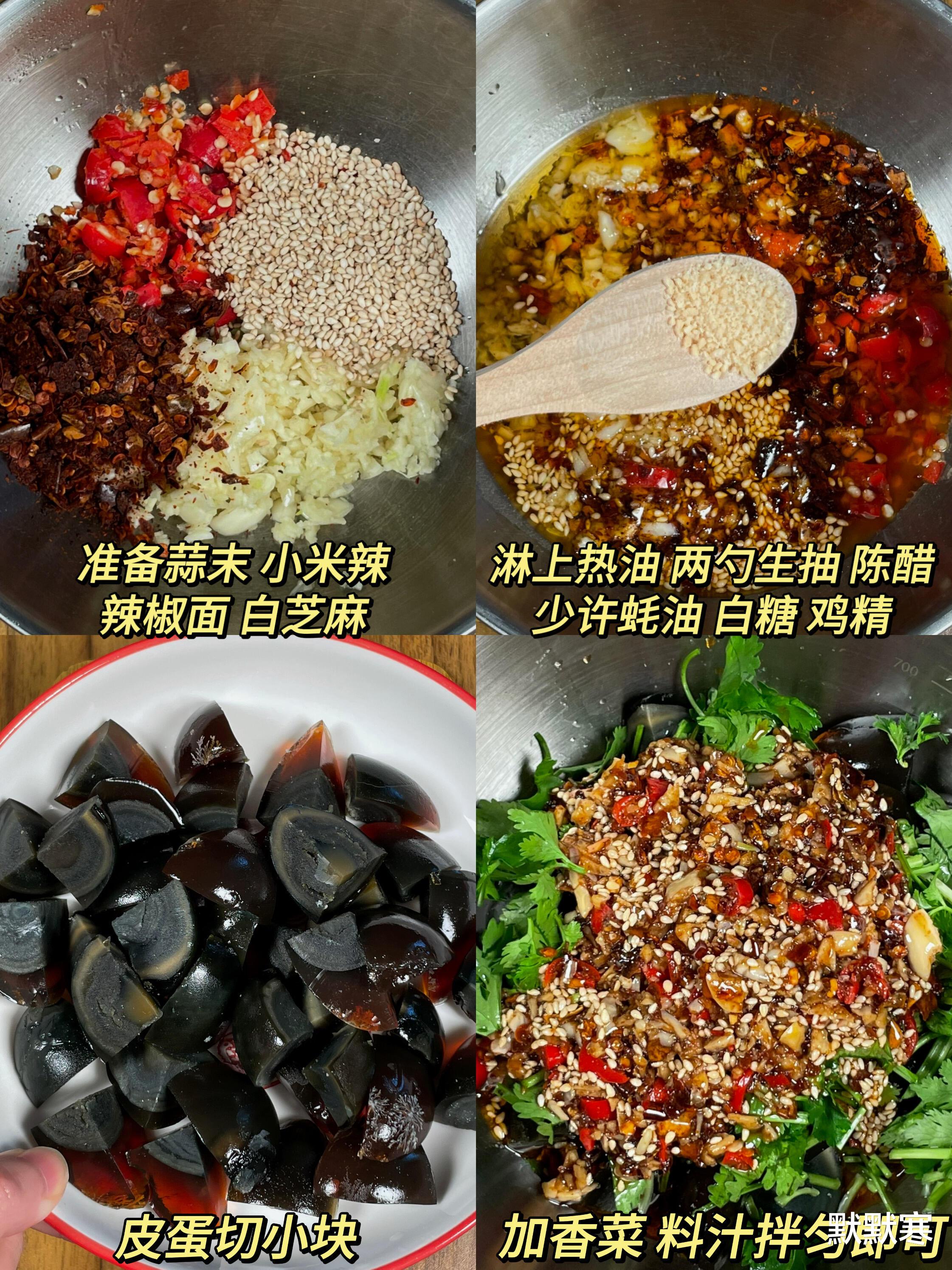 家人们,这么简单又美味的凉拌皮蛋,你们一定要试试!不管是当作开胃小菜,还是搭配正餐一起吃,都非常合适。皮蛋裹满蒜蓉醋汁,酸辣开胃超解腻,一口下去,那感觉简直太美妙了!相信你们做了之后,也会和我一样爱上这道菜的!赶紧动手做起来吧,让这道凉拌皮蛋为你的生活增添一份美味和快乐!