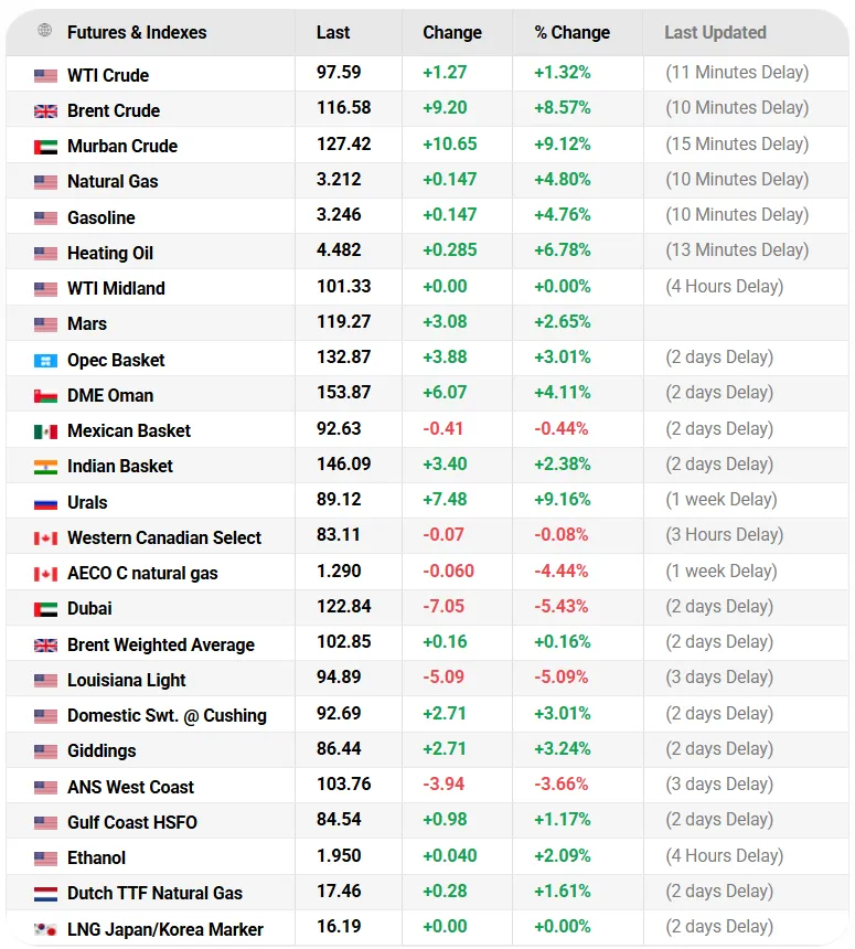而美国WTI原油(97美金每桶)和OPEC(133美金)原油价格差距也在不断拉大,已经达到了30%+,