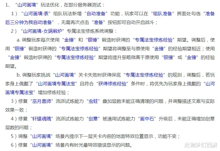 全新资料片开启测试,副本奖励调整继续测试中。