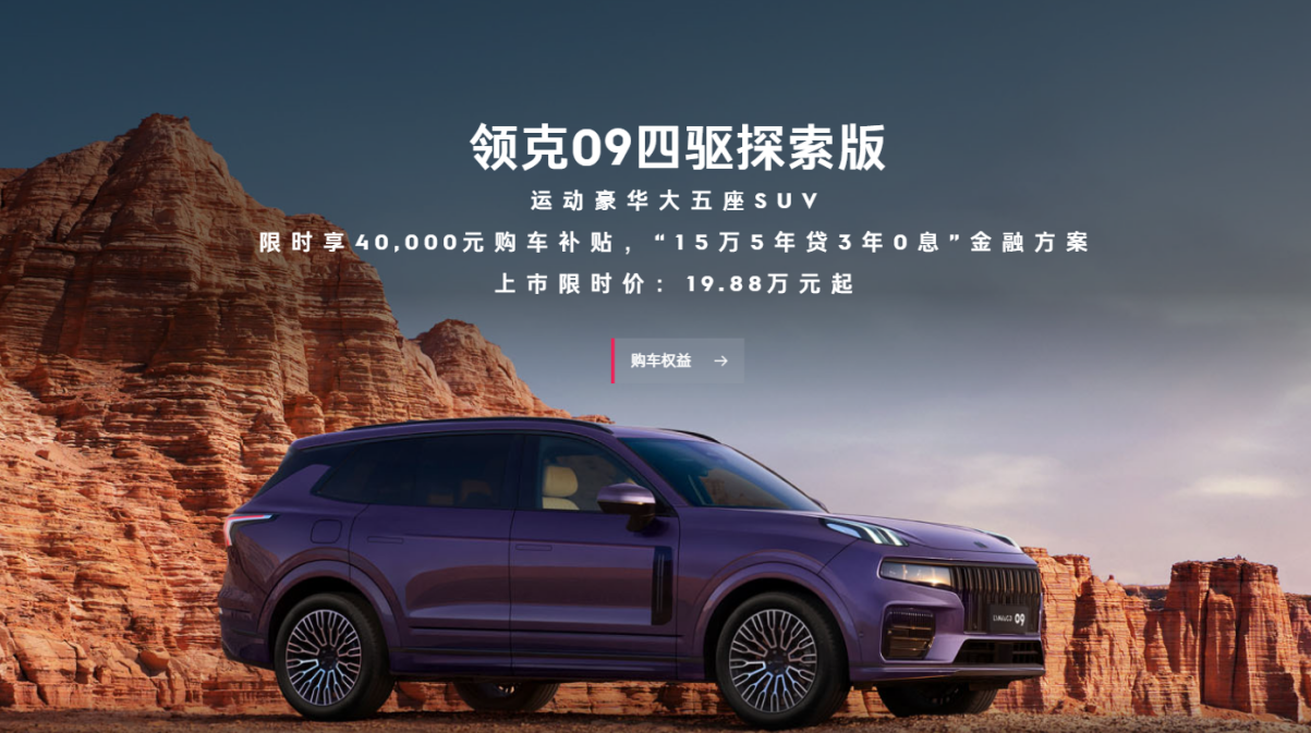过去很长一段时间,许多消费者,特别是对那些有家庭的人群来说,经常面临着一个选车难题,一方面希望爱车能满足自己的操控需求,另一方面又不得不照顾家庭出行。直到领克09的横空出世,这一难题算是得到了很好解决。如今2026款领克09四驱探索版也迎来上市,上市限时价19.88万起,在外观设计、舒适配置等各方面迎来升级,进一步满足家庭用户“一车多用”需求。