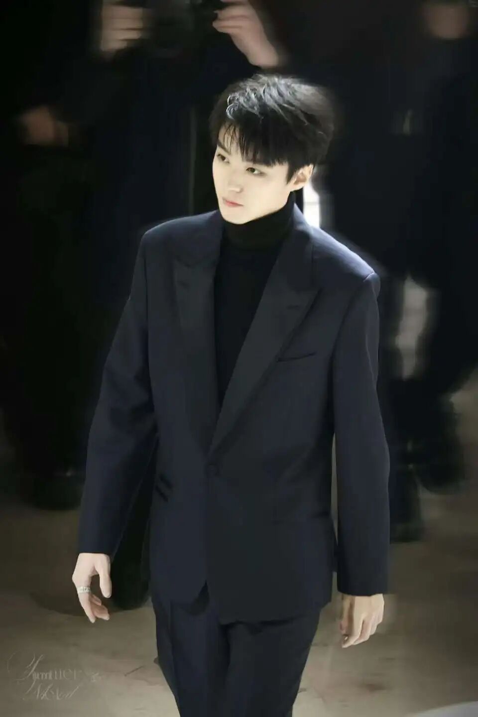 去年11月在南京的一场活动上,他穿了件黑色高领毛衣搭配修身西装,整个人看起来特别冷峻矜持。