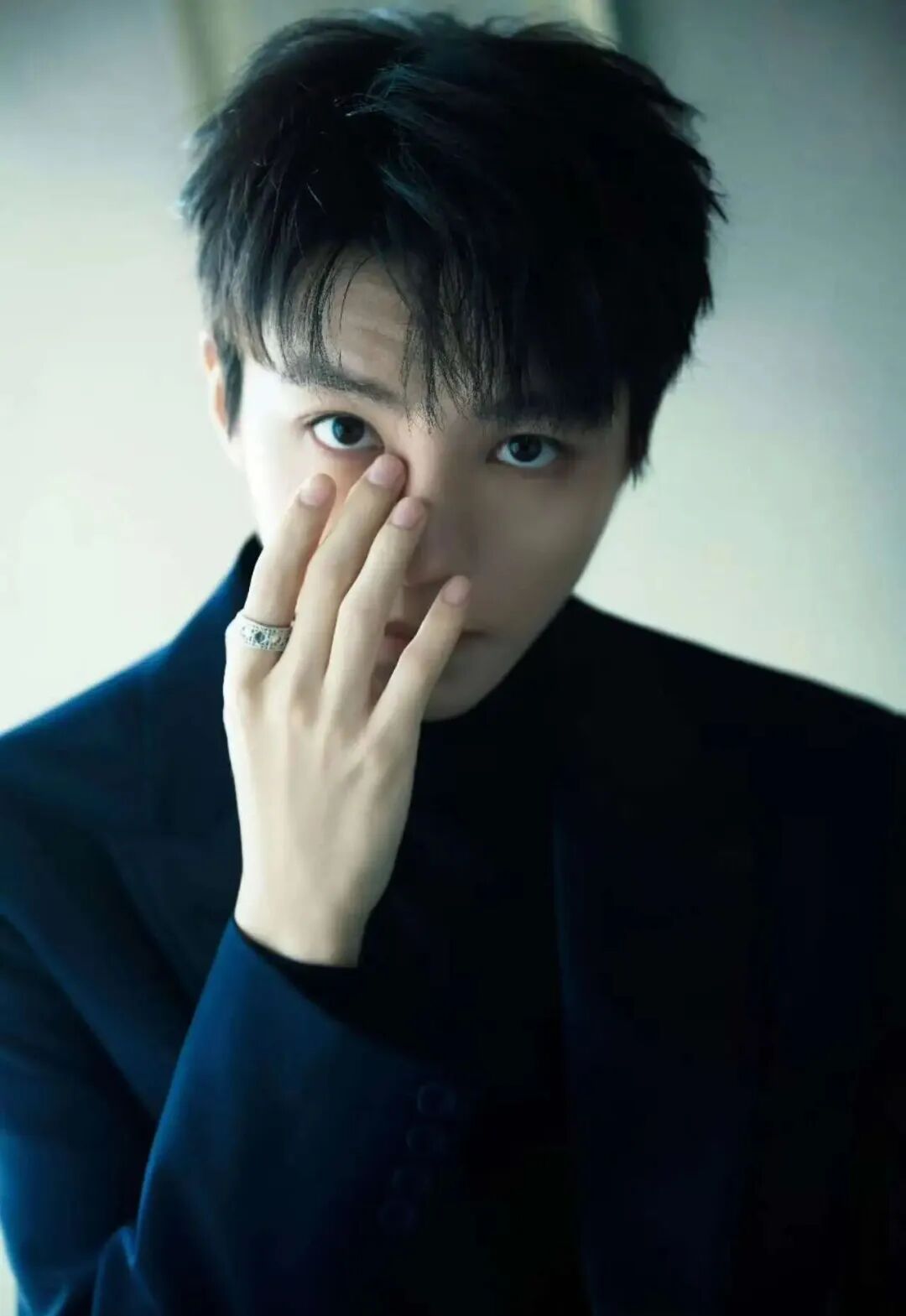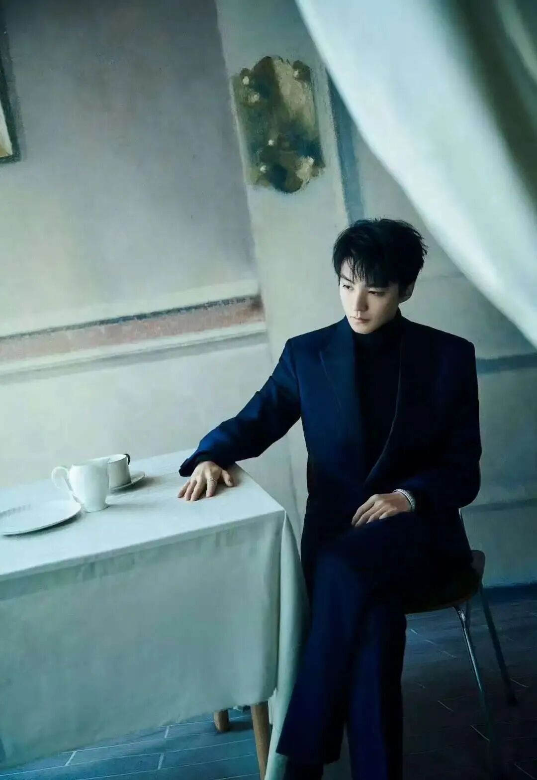 2018年的硬照里,他尝试了忧郁的西装造型,继续探索成熟风格。