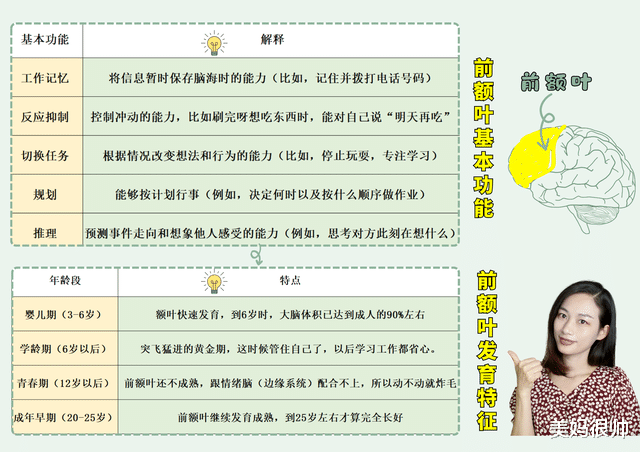 前额叶皮层,要到25岁左右才发育成熟,是大脑发育最慢的地方。所以,哪怕你家孩子一条都不占,也别急。
