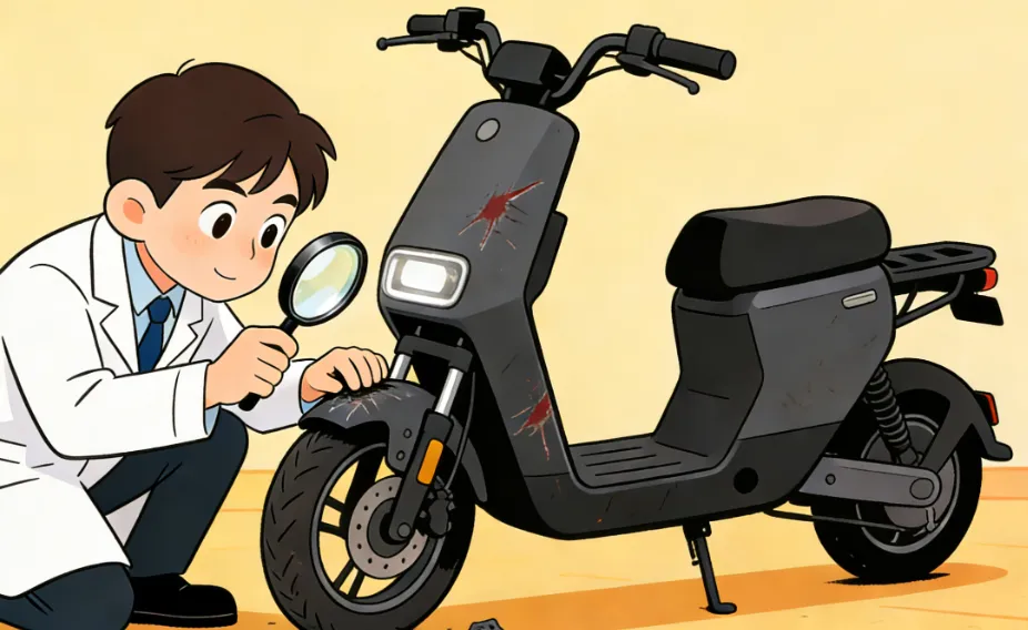 根据电动滑板车上人员的运动状态,鉴定专家初步判断的确是发生碰撞后导致重心不稳摔倒。随后,专家对疑似导致碰撞的电动自行车和电动滑板车进行了现场检验与勘察,二者车身上都分布着不同程度的锈迹和日常使用痕迹,鉴定难度非常之高。