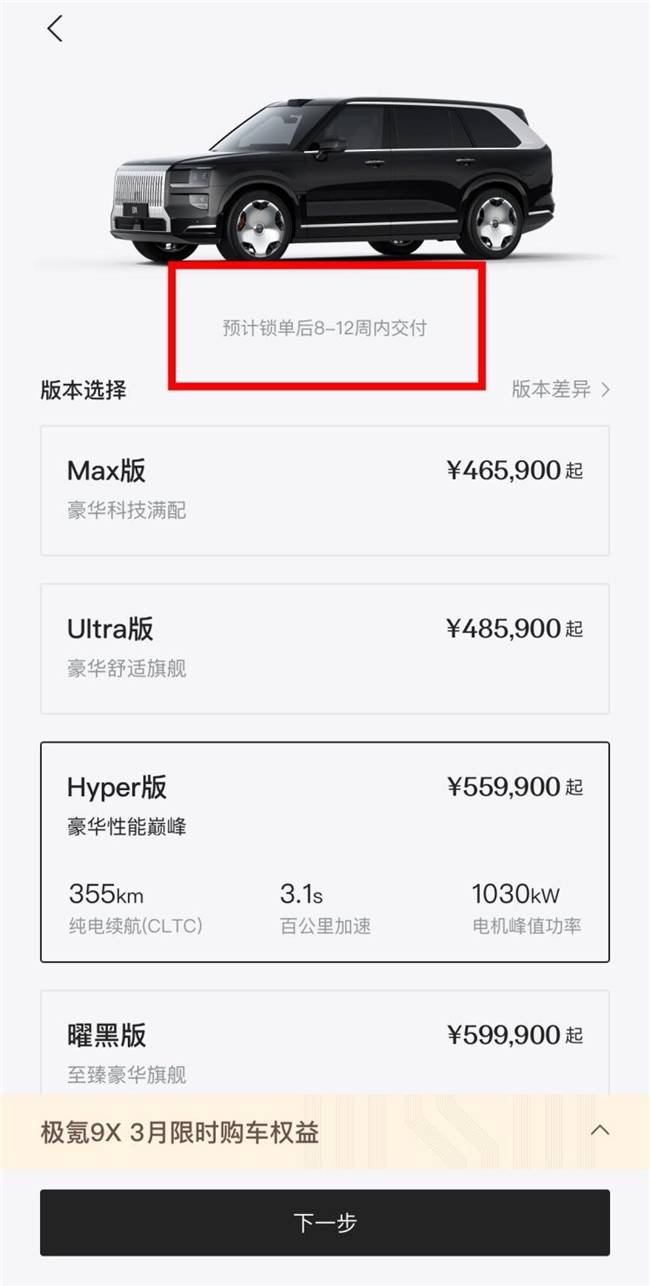 之前9X Hyper版交付时间提前到11-14周的时候,我还在疯狂纠结毕竟等车真的煎熬结果现在交付周期直接砍到了8周,供