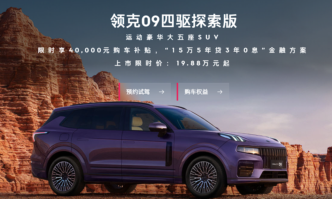 在选车时纠结于空间、操控、舒适和智能能否兼得,是许多准车主们的真实写照。2026款领克09四驱探索版的到来,似乎正是为了回应这种“全都要”的期待,其限时价19.88万起,展现出了不错的诚意。