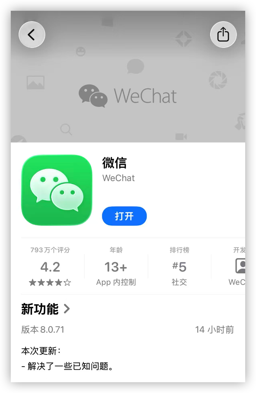 iOS 用户们,现在就可前往 App Store 中升级新版微信了。