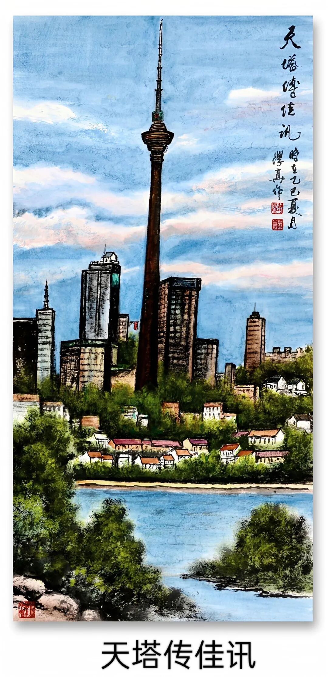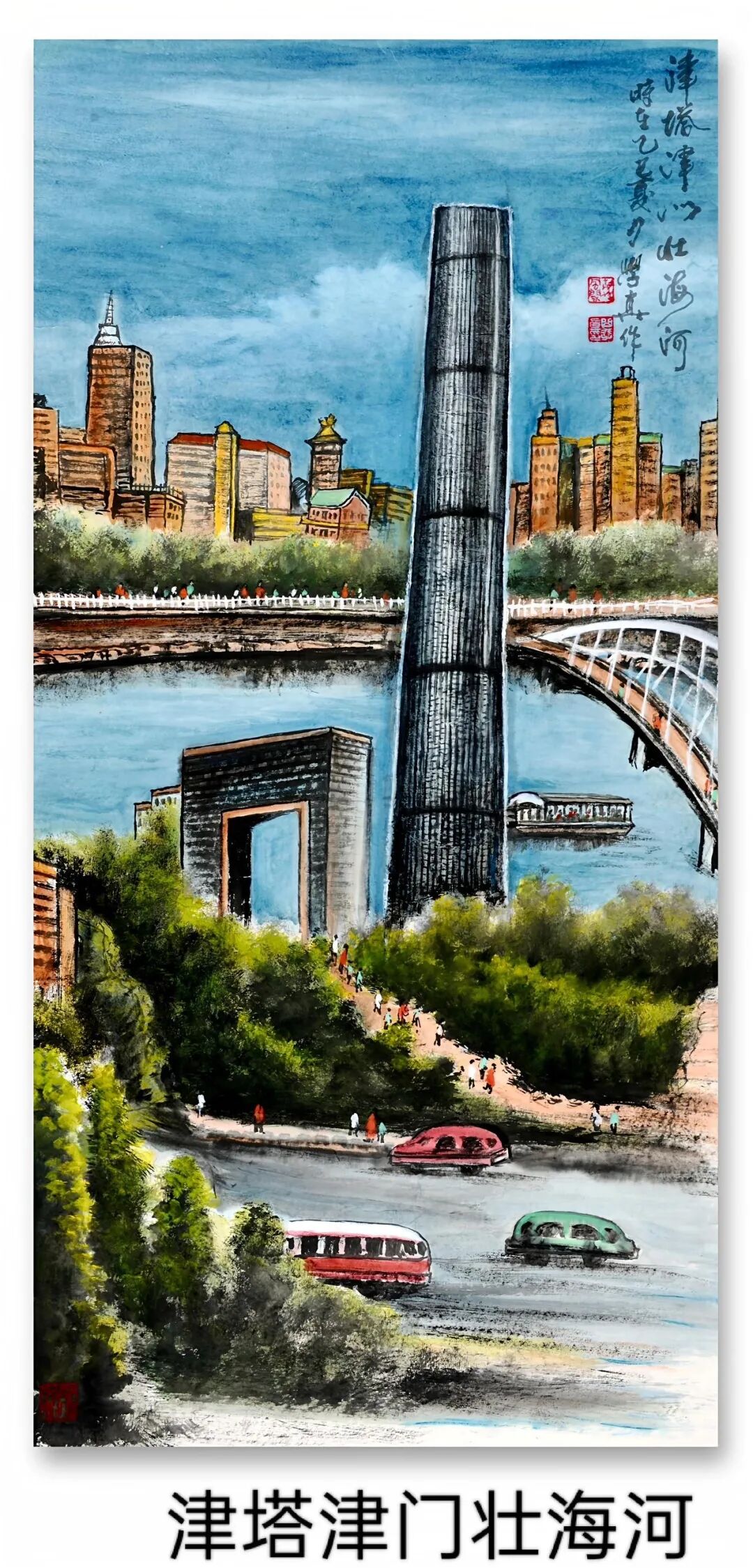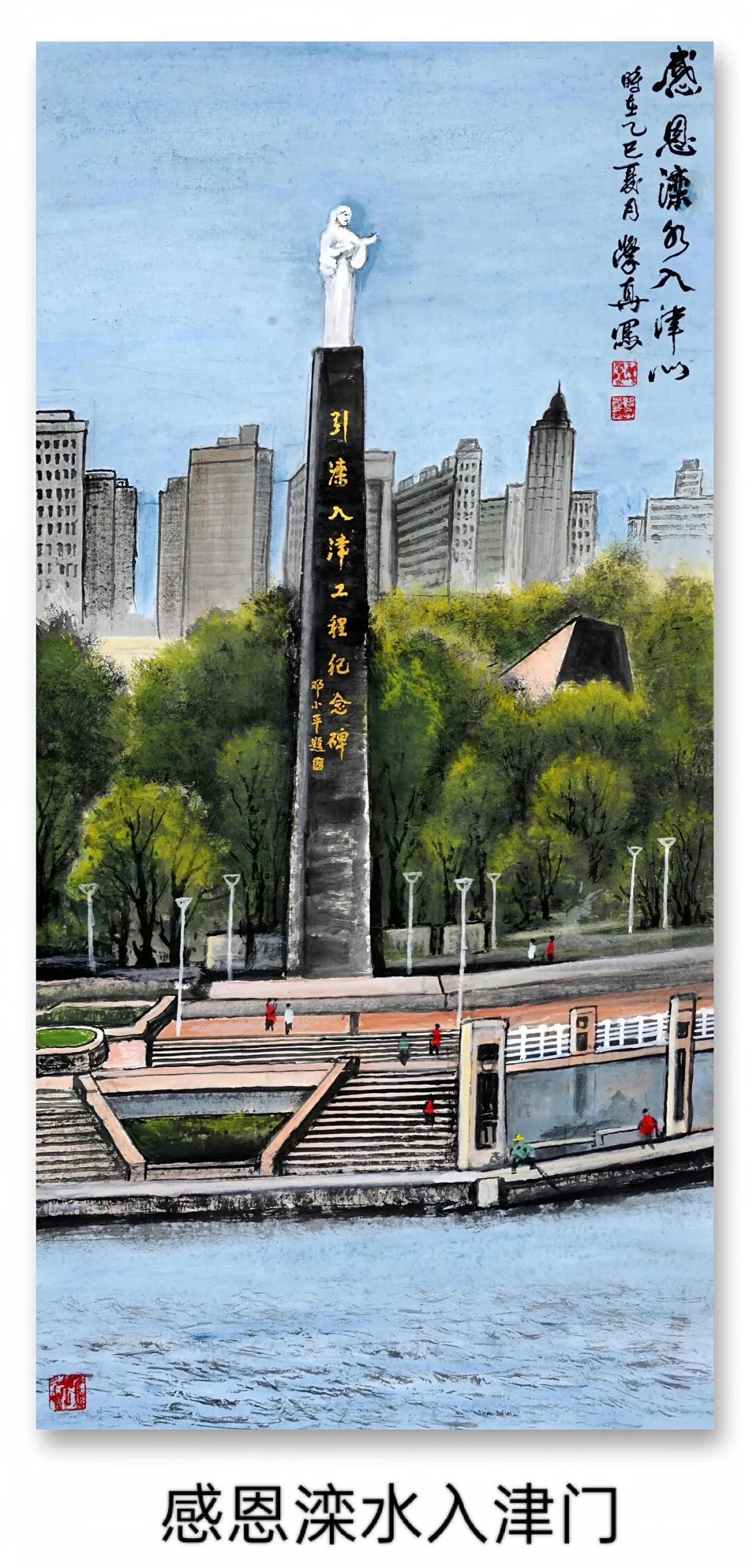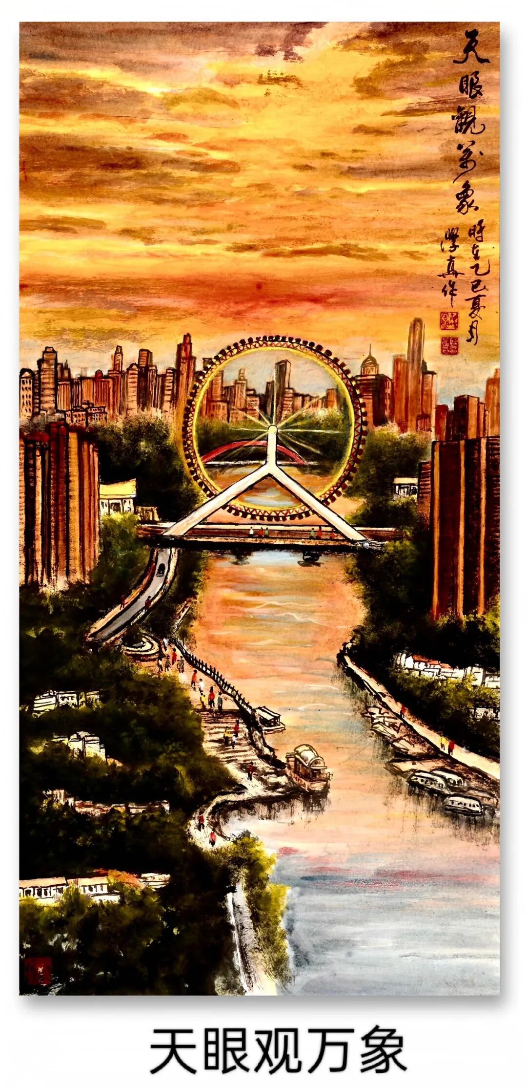 本市著名书画家曲学真先生,怀揣着对家乡天津的赤忱热爱,早在十年前便潜心于城市风光绘画创作,先后与著名画家刘家城先生联袂创作了20米和40米两幅海河长卷。