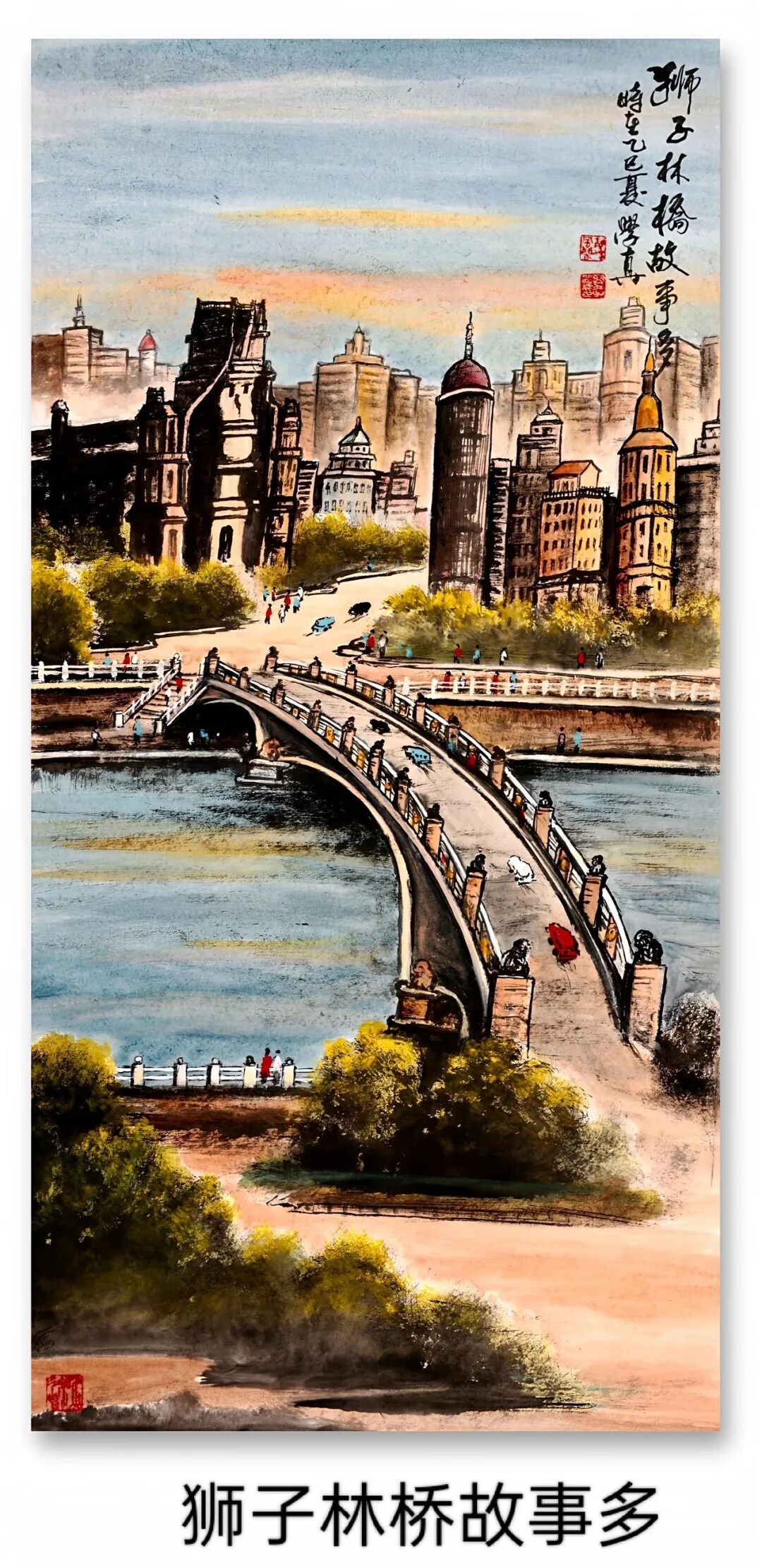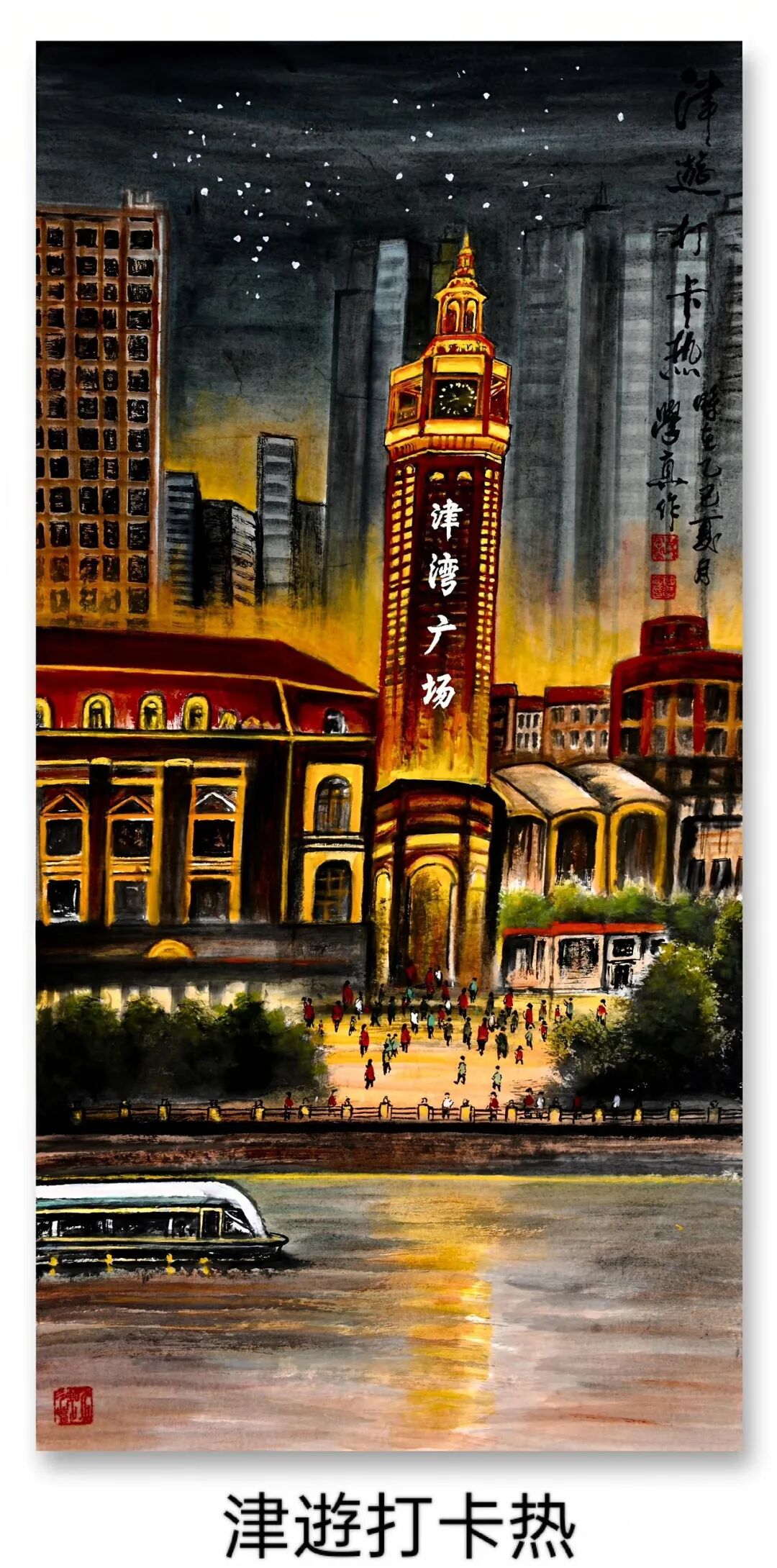 今年伊始,上合组织峰会落户天津的消息,更激发了曲先生的创作热忱。八十四岁高龄的他,不辞奔波地实地写生、泼墨于画室,最终完成又一批描摹天津美景的画卷。