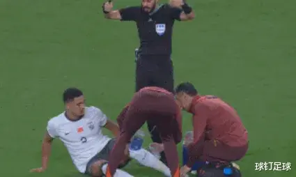 第56分钟,张玉宁与达瓦萨里拼抢后倒地,后者起身后直接踩到了张玉宁的小腿。