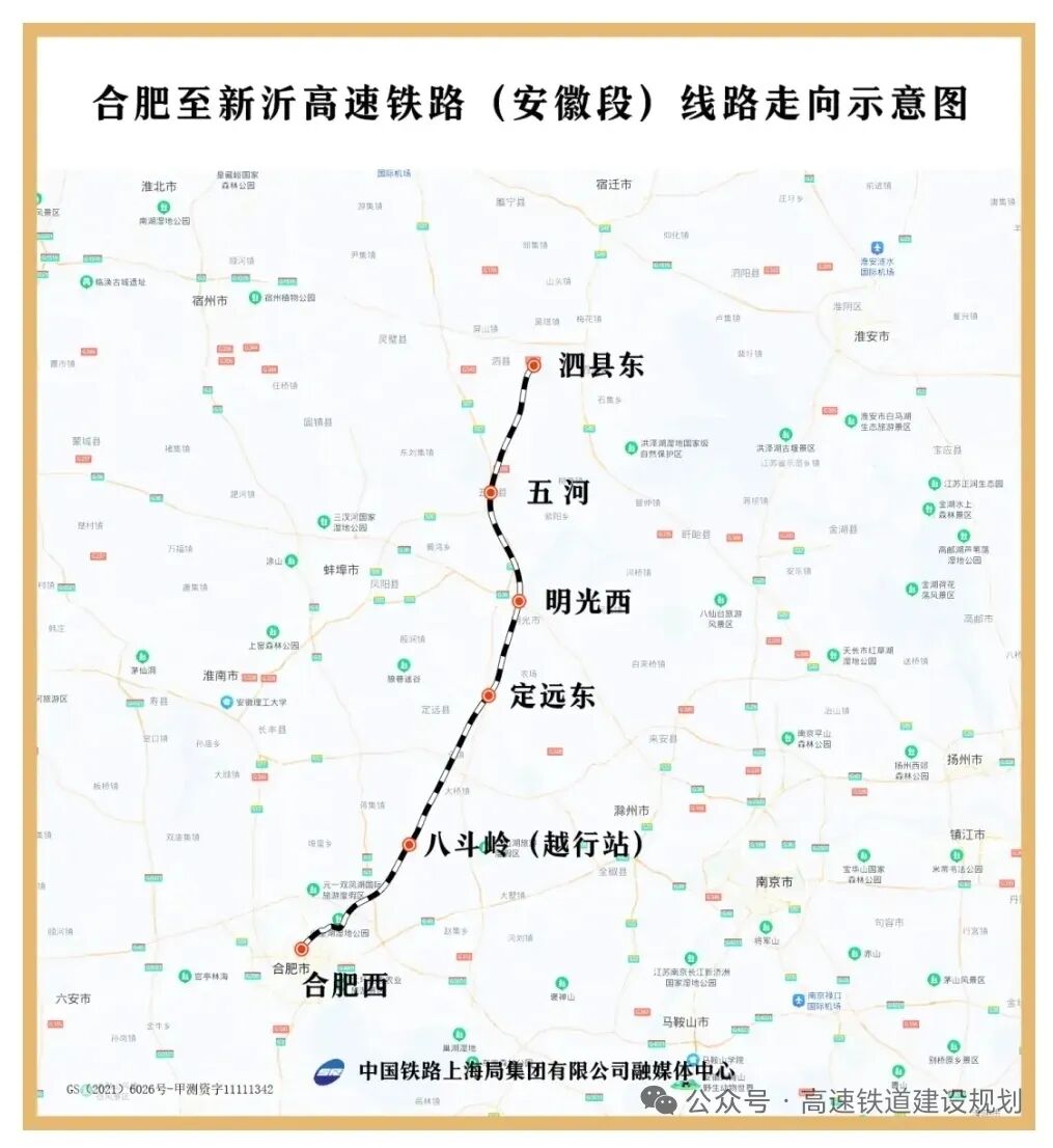 项目全长约193km,时速350km/h,合肥西—泗县东。