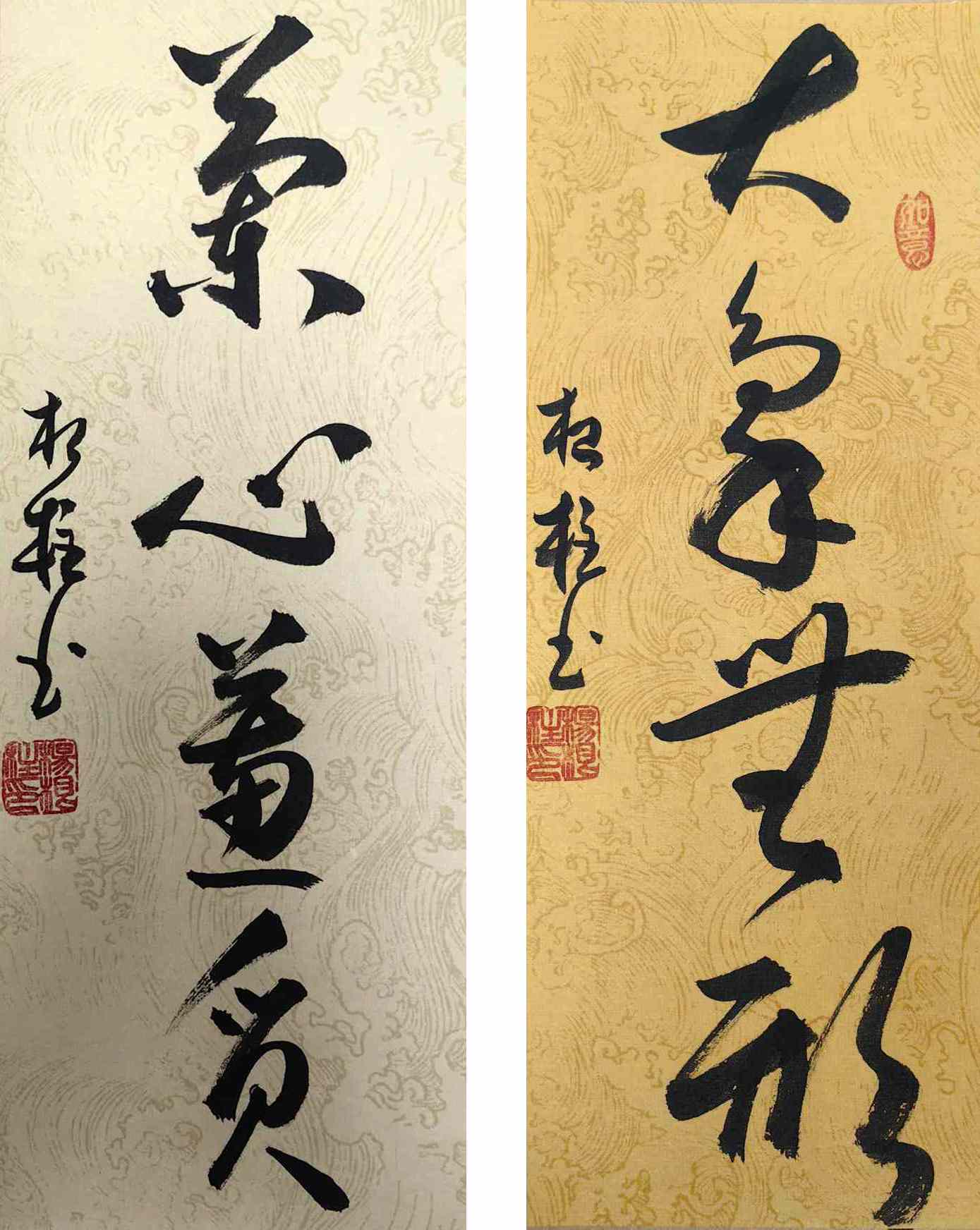 不仅如此,杨根柱还打破题材局限,将兰花创作推向宏大叙事。他的横幅兰花作品画心规格达270cm×70cm,最长兰叶近两米,以一株巨兰的磅礴气势,颠覆了兰花题材多为小品的传统印象,赋予其震撼人心的视觉张力与精神力量。