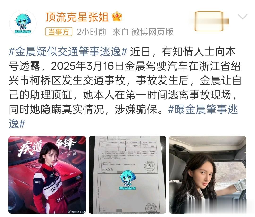 首先是知情者向博主曝光金晨存在肇事逃逸。