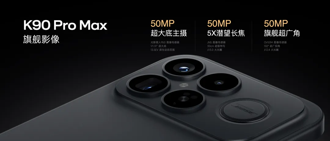 Bose 作为全球范围音频专业领先品牌,以其在小型化设备上的卓越声音表现而闻名。在本次合作中,Bose 深度参与共建,双方共同为 REDMI K90 Pro Max 打造了豪华三扬声器声学系统,并通过全链路 2.1 声道的构建,突破手机紧凑设计的限制,让足以重现现场演出临场感与情感张力的高品质低音,首次来到手机这样的移动音频设备,为用户带来了具备典型Bose风格的,低音饱满、细节丰富、人声清晰,且具备沉浸式声场的移动音频全新体验。