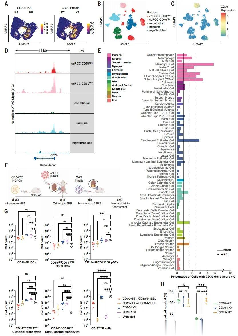 唯一的例外是食管上皮细胞,但也仅有约3%的细胞存在CD70低水平表达。这一情况在后续的临床研究中还需要重点跟踪观察,以确保疗法的全面安全性。