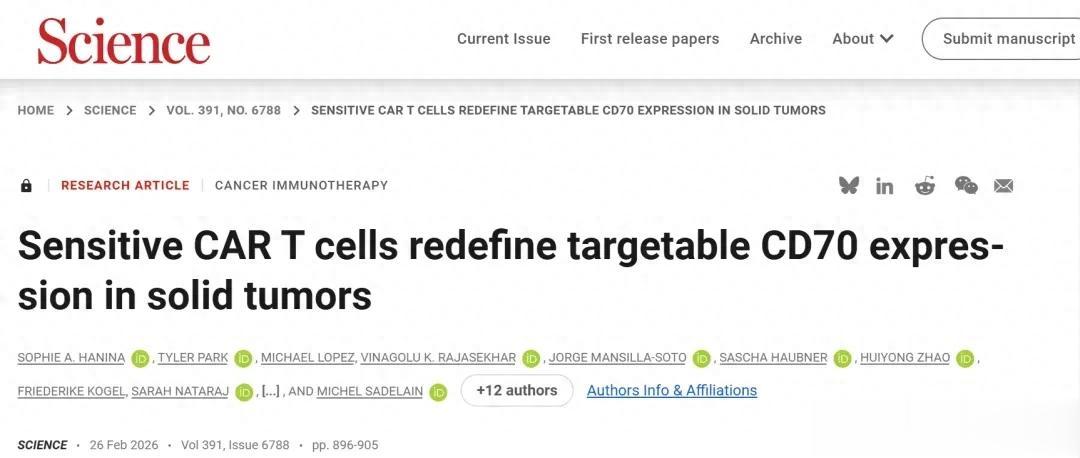 2026年2月,全球顶刊Science重磅刊发的一项研究带来了转机——美国哥伦比亚大学与纪念斯隆凯特琳癌症中心联合团队开发的一种灵敏度更高的新型细胞疗法HIT-T,在肾癌、卵巢癌、胰腺癌三大难治性实体瘤中实现了肿瘤的彻底清除,长期停滞的实体瘤CAR-T领域有望「逆风翻盘」!