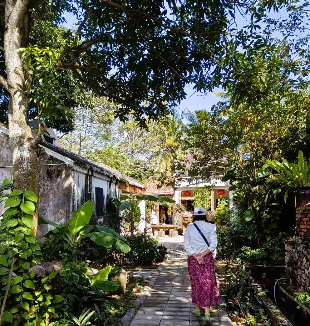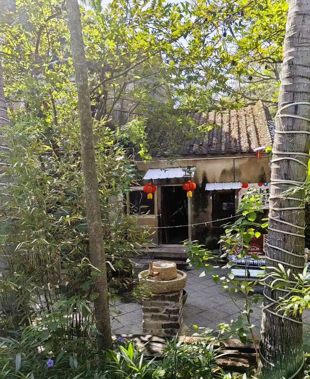 有座民居,好像以前是大户人家所有。经过修缮,成了康养中心,更是隐在绿树、芭蕉丛中。