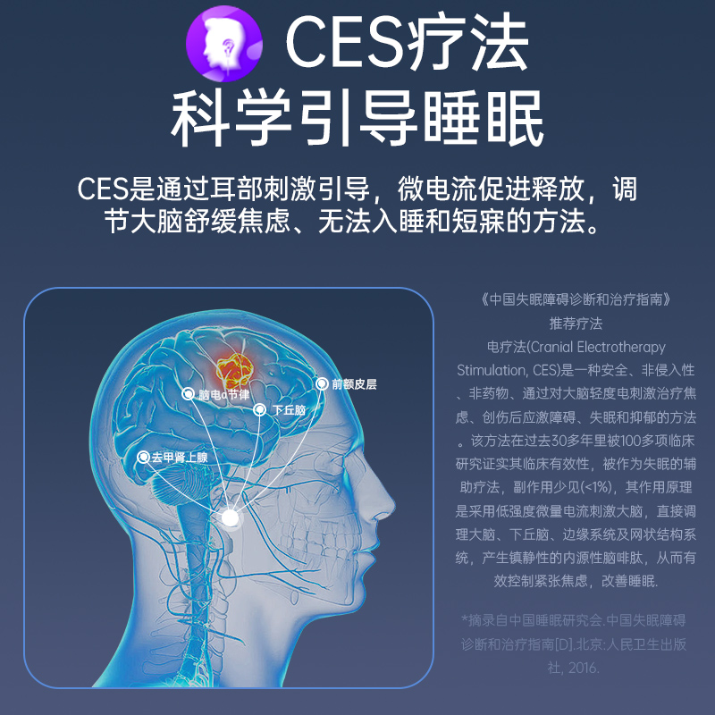 你是否正被失眠困扰?我内置的CES睡眠辅助技术,能通过微电流温和调节你的神经系统,帮助你无需药物,即可自然、轻松地入睡。同时,我会深度分析你的睡眠结构,告诉你每晚的深睡、浅睡和清醒时间,帮你找到失眠的根源,真正成为你失眠的“终结者”。