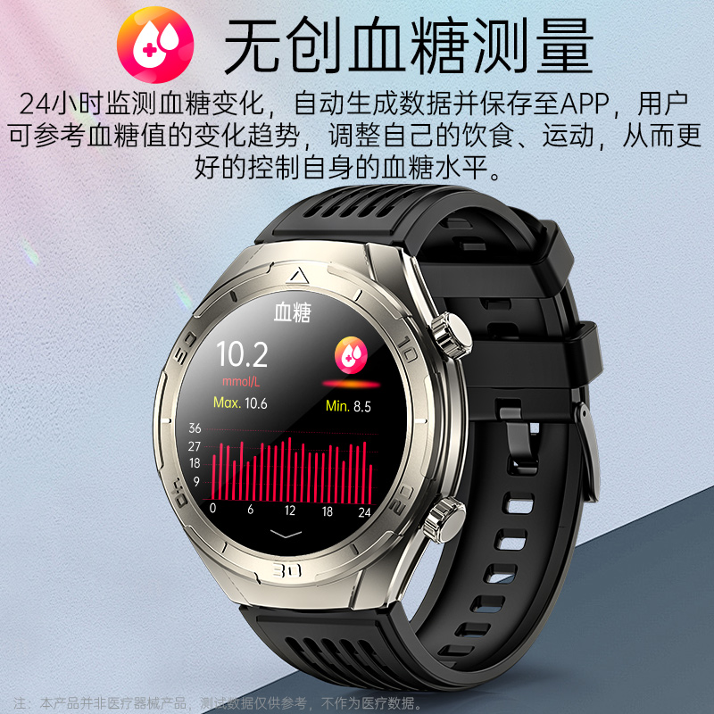 这或许是我最让你惊喜的能力。通过先进的生物传感器,我实现了无创血糖健康趋势测量。这意味着,你再也不用忍受每日扎针的疼痛与繁琐,只需抬手,就能看到你的血糖水平变化趋势,轻松管理日常饮食与健康
