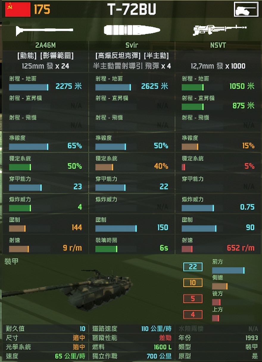《红龙》中T-72BU的武器参数与《WARNO》中T-80UD的武器参数