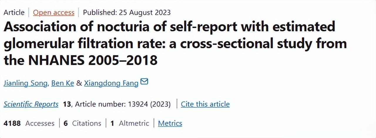 参考资料1、美国《国家健康与营养调查》.自我报告的夜尿症与估计肾小球滤过率的相关性:一项基于2005-2018年NHANES数据的横断面研究.2023-8-25