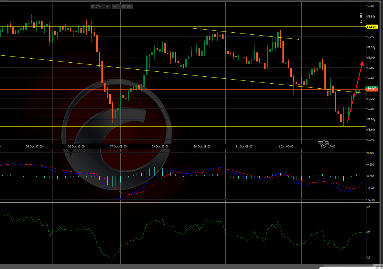 上方阻力阶梯:57.70 → 58.10 → 58.50