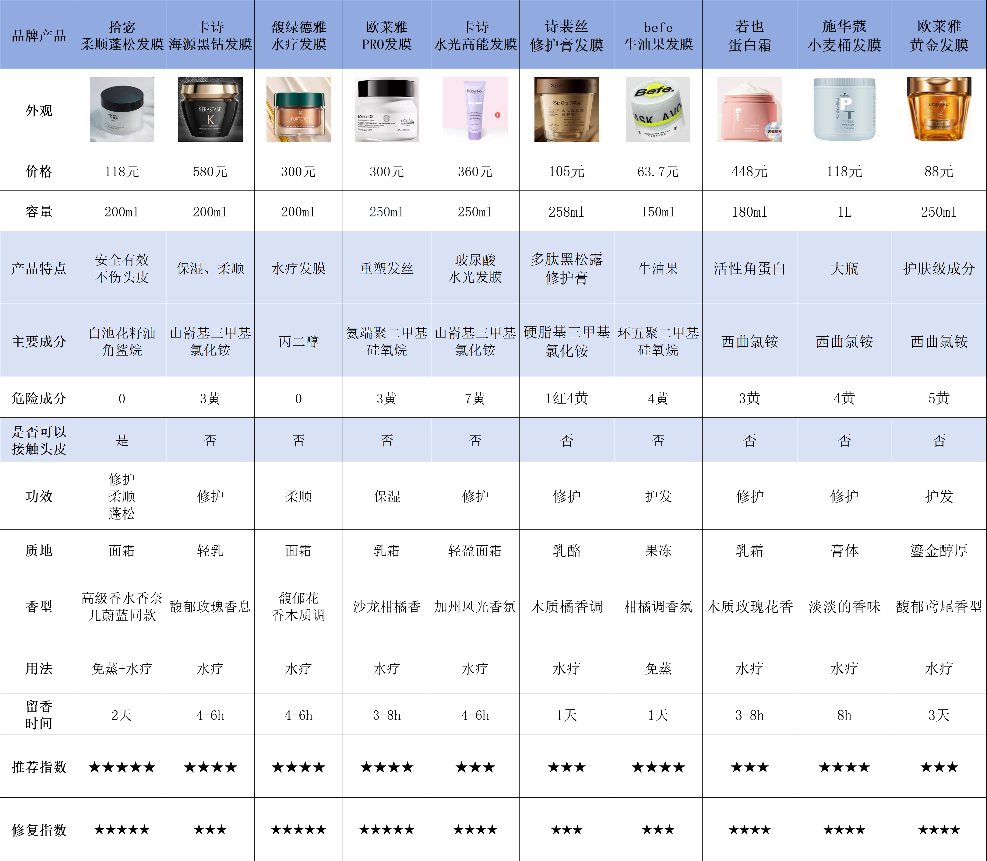 看了之前的选购小常识,你现在知道怎么选适合自己的发膜了吗?我特意把几款常遇到的发膜实测数据做了整理,做成表格清晰看得到。真实用后感整理的,希望能帮到有需要的你。