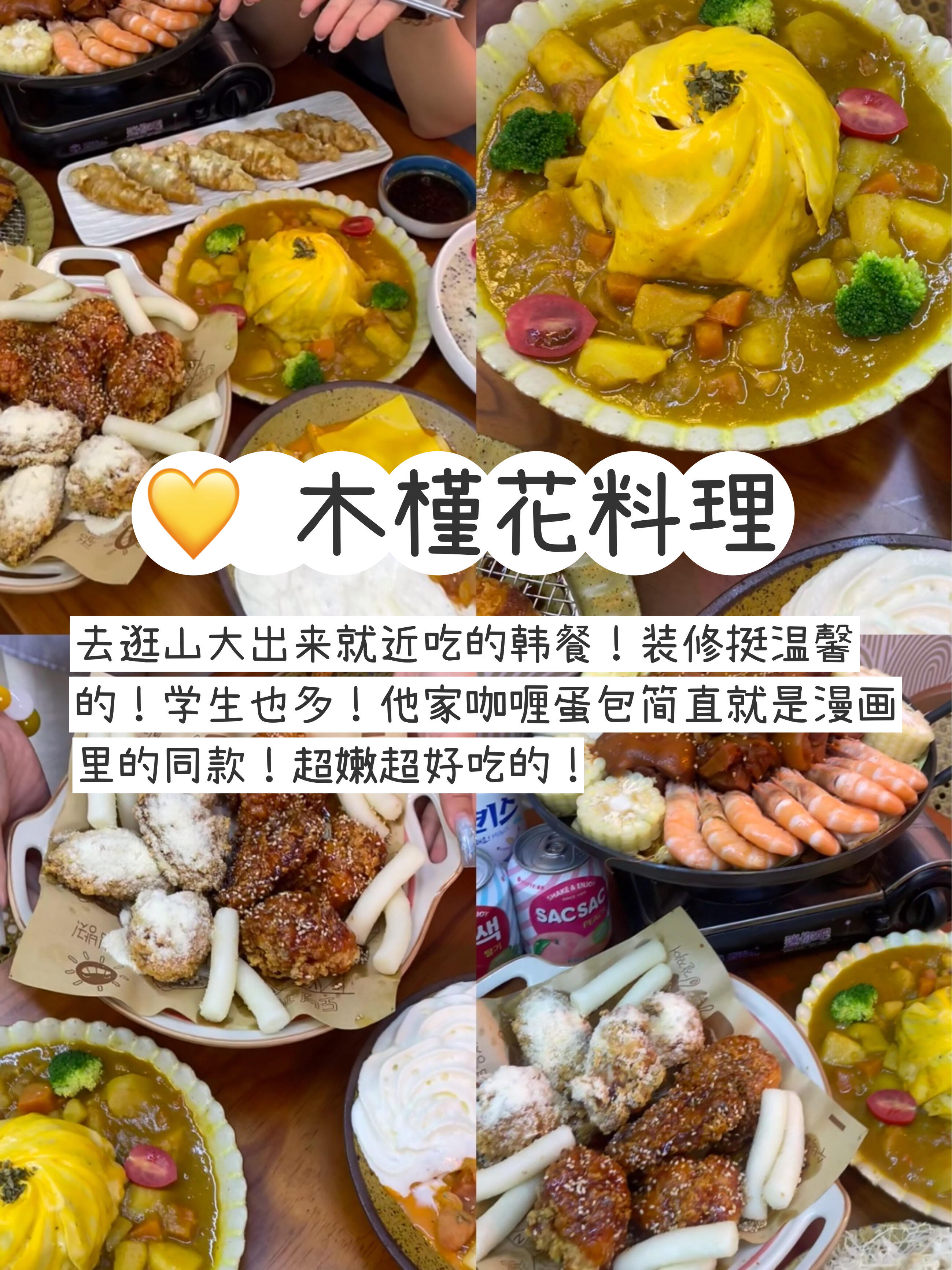 去逛山大出来就近吃的韩餐!装修挺温馨的!学生也多!他家咖喱蛋包简直就是漫画里的同款!超嫩超好吃的!