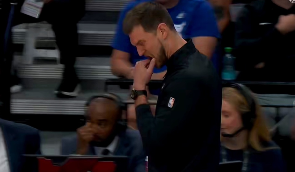 比赛的最有趣的画面出现在第四节,也是杨瀚森“生存危机”具象化的时刻。末节初段,杨瀚森在防守端连续赔上两次犯规,火箭趁机追平比分。在第二次哨响的瞬间,转播镜头捕捉到了极为真实的一幕:杨瀚森没有第一时间找裁判理论,而是下意识地死死盯着场边的代理主帅斯普利特。教练,别换我,我还能打。彷佛表情在说话,这一瞬间的“萌态”背后,是边缘轮换球员在NBA残酷生存环境下的真实写照——每一次犯规,都可能是通往板凳席末端的单程票。斯普利特最终还是让杨瀚森打多了一会才做出了换人调整,而杨瀚森在有限时间里的贡献,已足够让他赢得信任。
