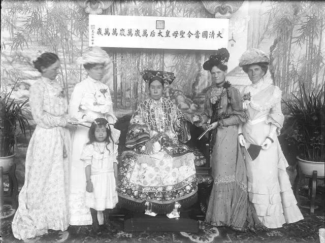 这张是列强侵华时,慈禧和外国公使夫人的合影。