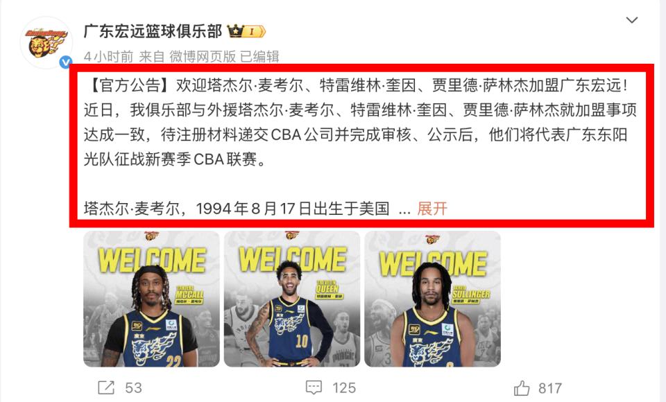 其实早在坊间出现这份外援名单一公布,便在广东球迷圈引发了不小的讨论,而最大的焦点无疑是大外援萨林杰。这位内线悍将虽然年龄尚可,但他上赛季的状态确实很差。他究竟还能否恢复当年的勇猛,成为了一个巨大的问号。而麦考有一定实力,奎因也正值当打之年,但坦白说,这套外援配置与上海队或山西队相比,在纸面实力上似乎并不占优,很多广东球迷认为,杜锋想要凭借这样的外援组合去冲击冠军,风险实在不小。