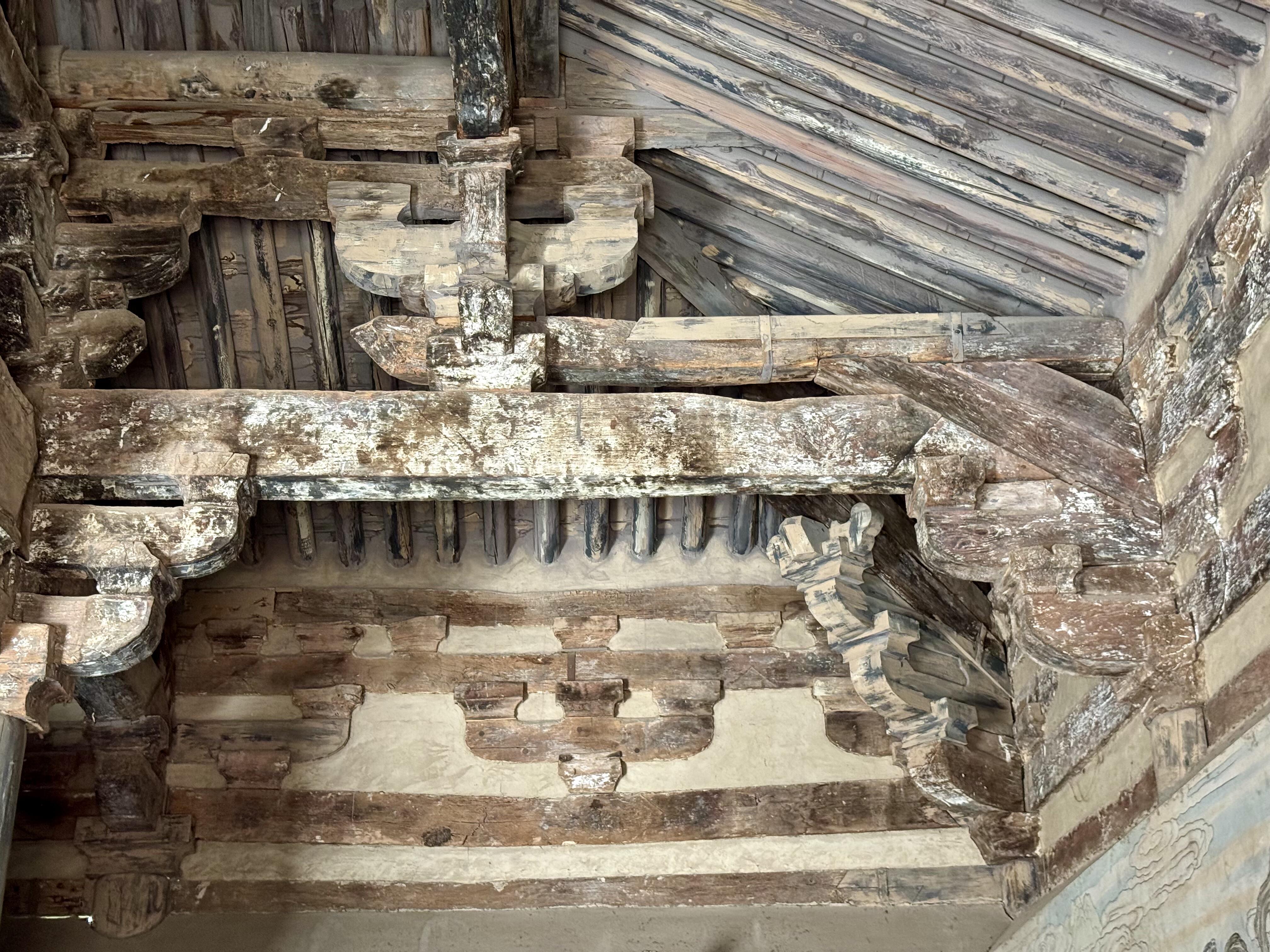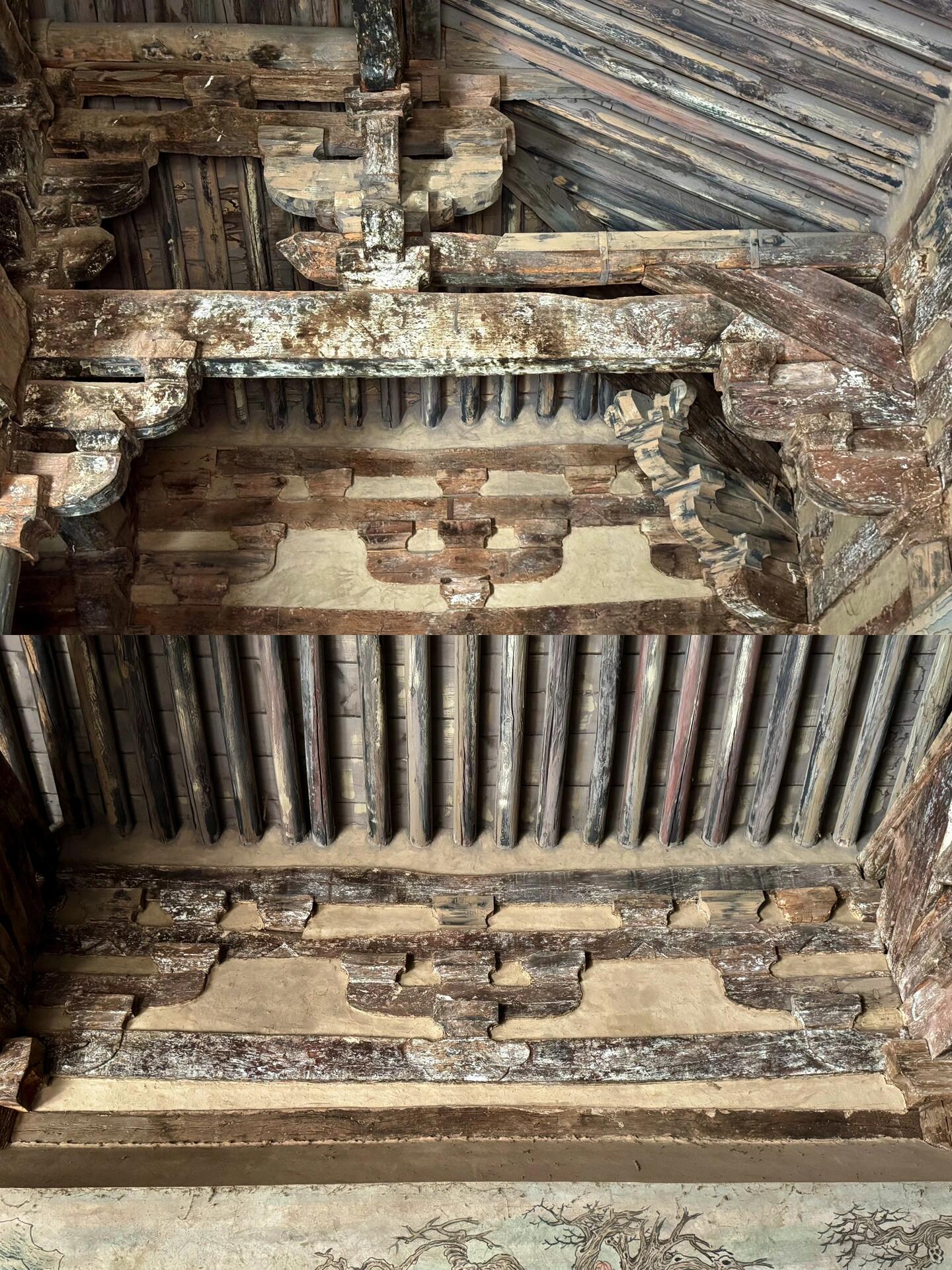 更让学者们兴奋的是梁架结构:后槽金柱上的栌斗直接坐于柱头,没有常见的普拍枋;大梁与平梁间的十字斗拱隔架,如同古建筑学家心中的"蒙娜丽莎微笑"——这种做法与五代平遥镇国寺大殿如出一辙,却在现存宋代建筑中几乎绝迹。带队的教授当场断言:"这座大殿的价值,或许能改写中国木构建筑断代史。"