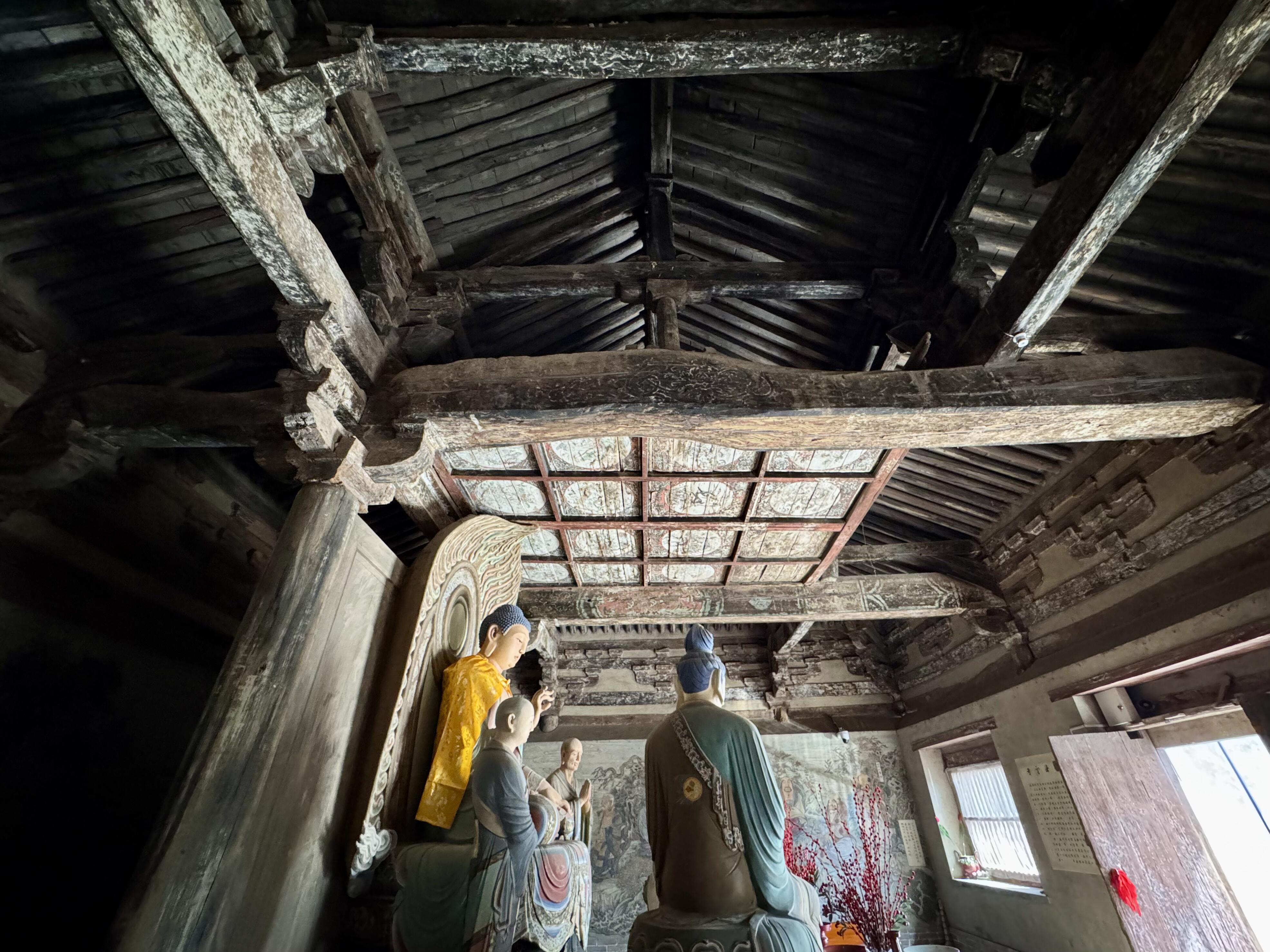 在建筑学界,小张碧云寺三圣殿的断代争议堪称"罗生门"。主张五代说的学者拿出镇国寺大殿做对比:同样的十字斗拱隔架,同样的无普拍枋构造,甚至连大殿的面宽进深比例(1:1.2)都高度相似。他们推测,这座大殿可能建于五代北汉时期,是山西现存最早的三教合流建筑实例。