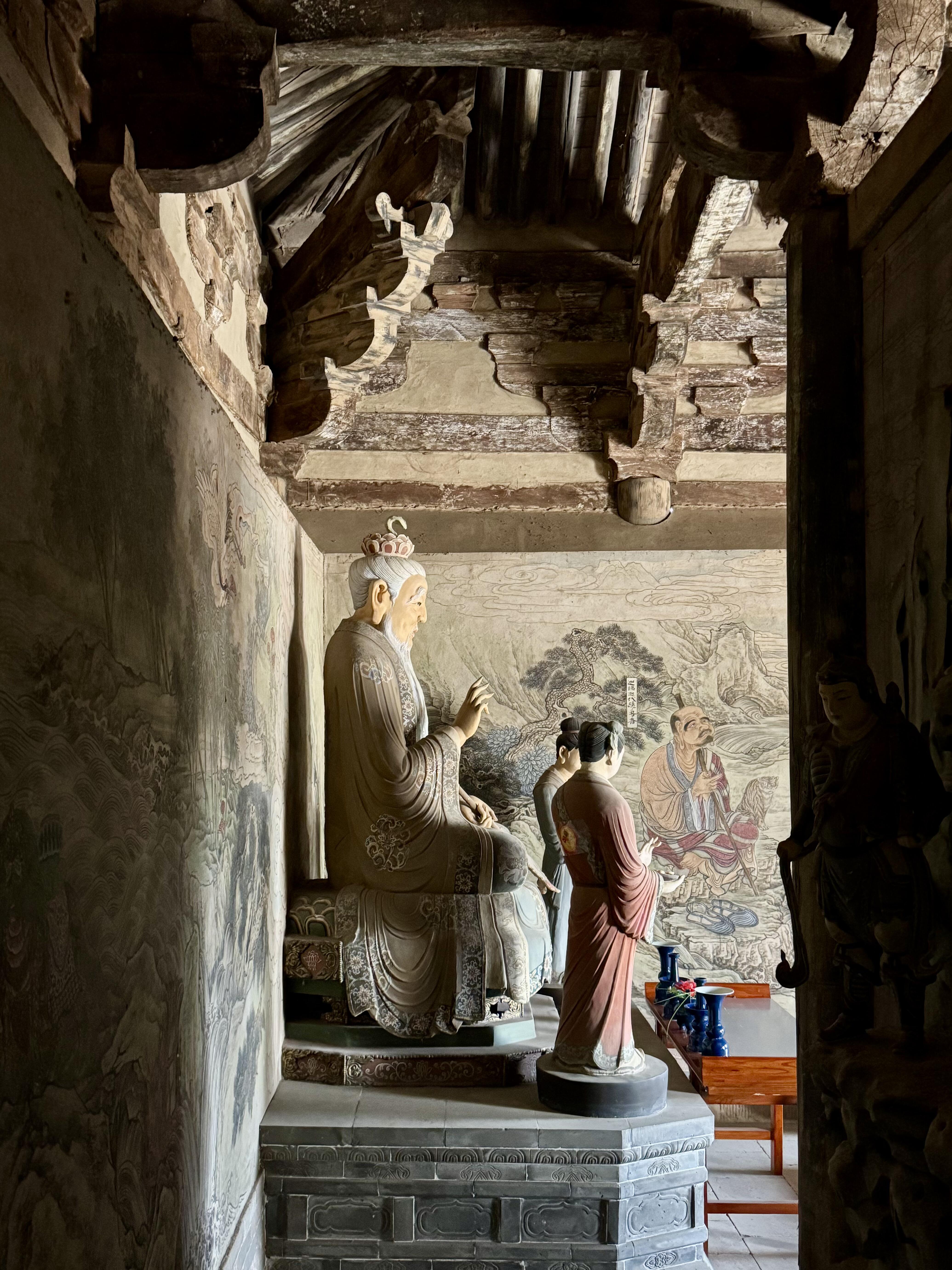 三圣殿的"三教同堂"布局,比建筑断代更具社会学价值。正中央的佛龛里,释迦牟尼结跏趺坐,左手边是孔子执卷讲学,右首为老子骑牛出关,这种"平等共处"的格局在明清寺庙中常见,却在唐宋时期极为罕见。殿内现存的清代碑刻记载,乾隆年间村民集资重修时,特意在门楣题刻"三教归一"四字,反映了基层社会对多元信仰的包容。