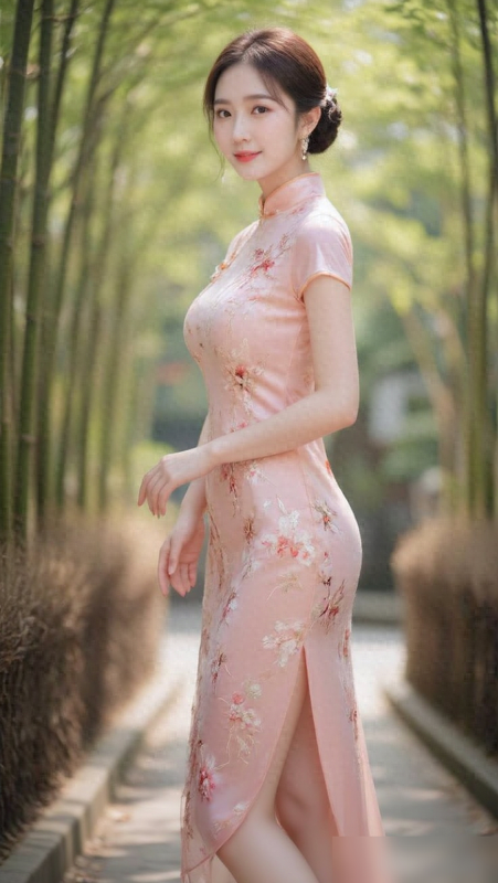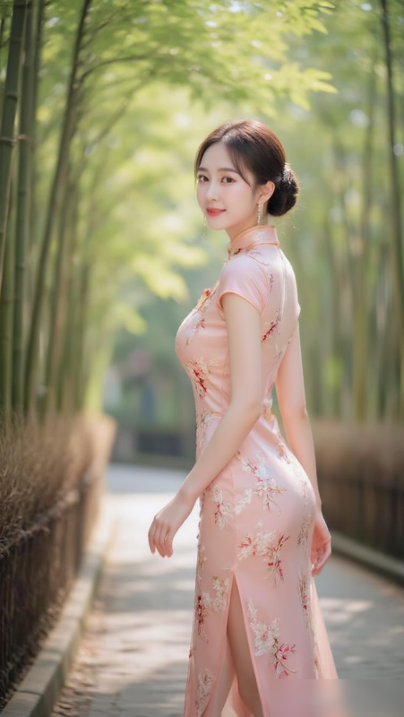 最近刷社交平台,总能被一组「浅粉旗袍配竹林」的照片戳中——嫩粉裙裾在青竹间轻摆,阳光透过竹叶在衣料上洒下斑驳光影,姑娘盘发间的小装饰随着步伐轻晃,活脱脱从水墨画里走出来的古典美人。
