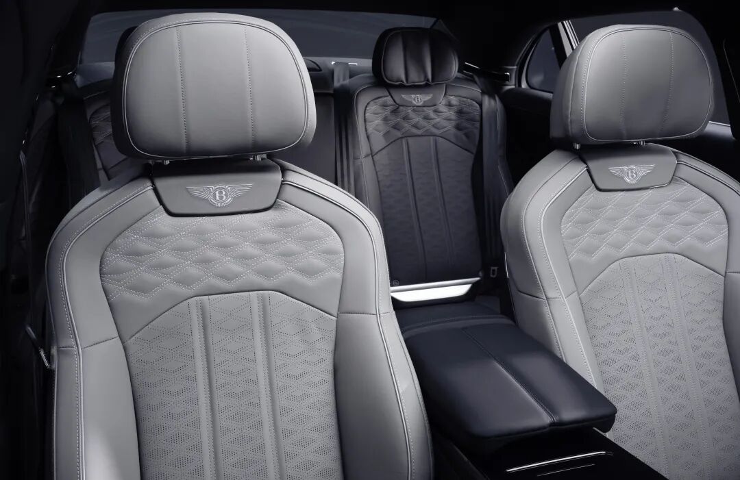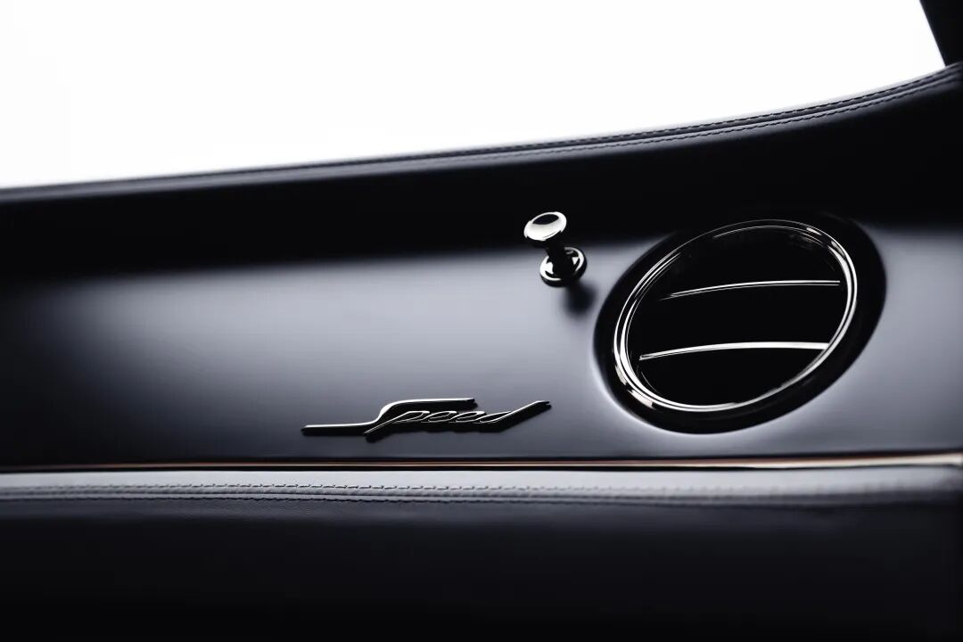 飞驰Speed从金属钨钢色渐变为玛瑙黑,致敬南加州的夜空。内饰呼应这种对比,前排采用海豚灰,后排采用炭灰色。更明亮的斯特拉托斯蓝点缀色用于突出缝线、座椅滚边和徽标缝线。