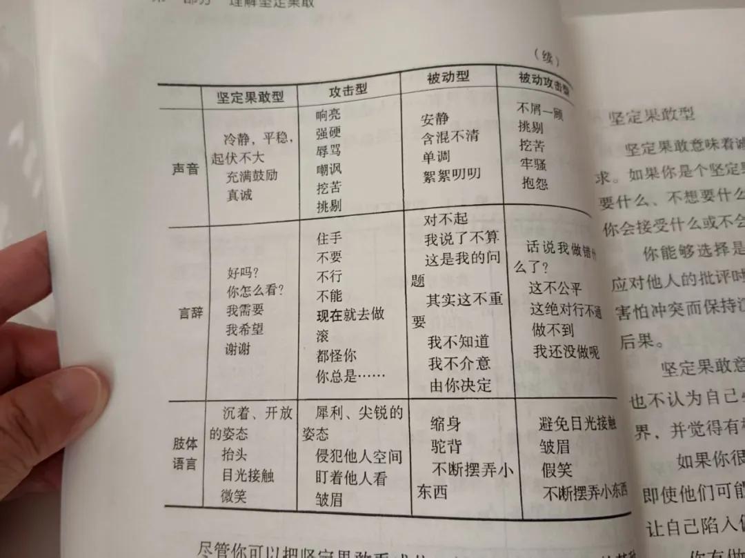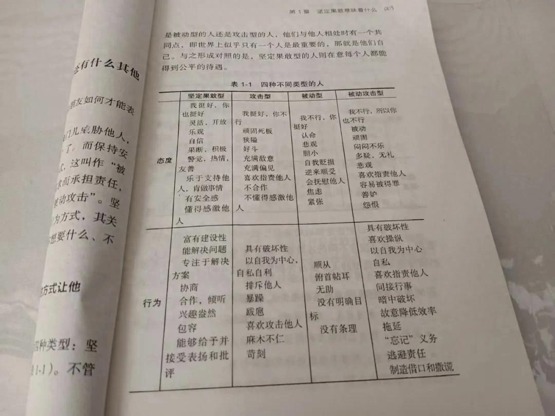 第一章提到四类型的人:坚定果敢型、攻击型、被动型、被动攻击型。