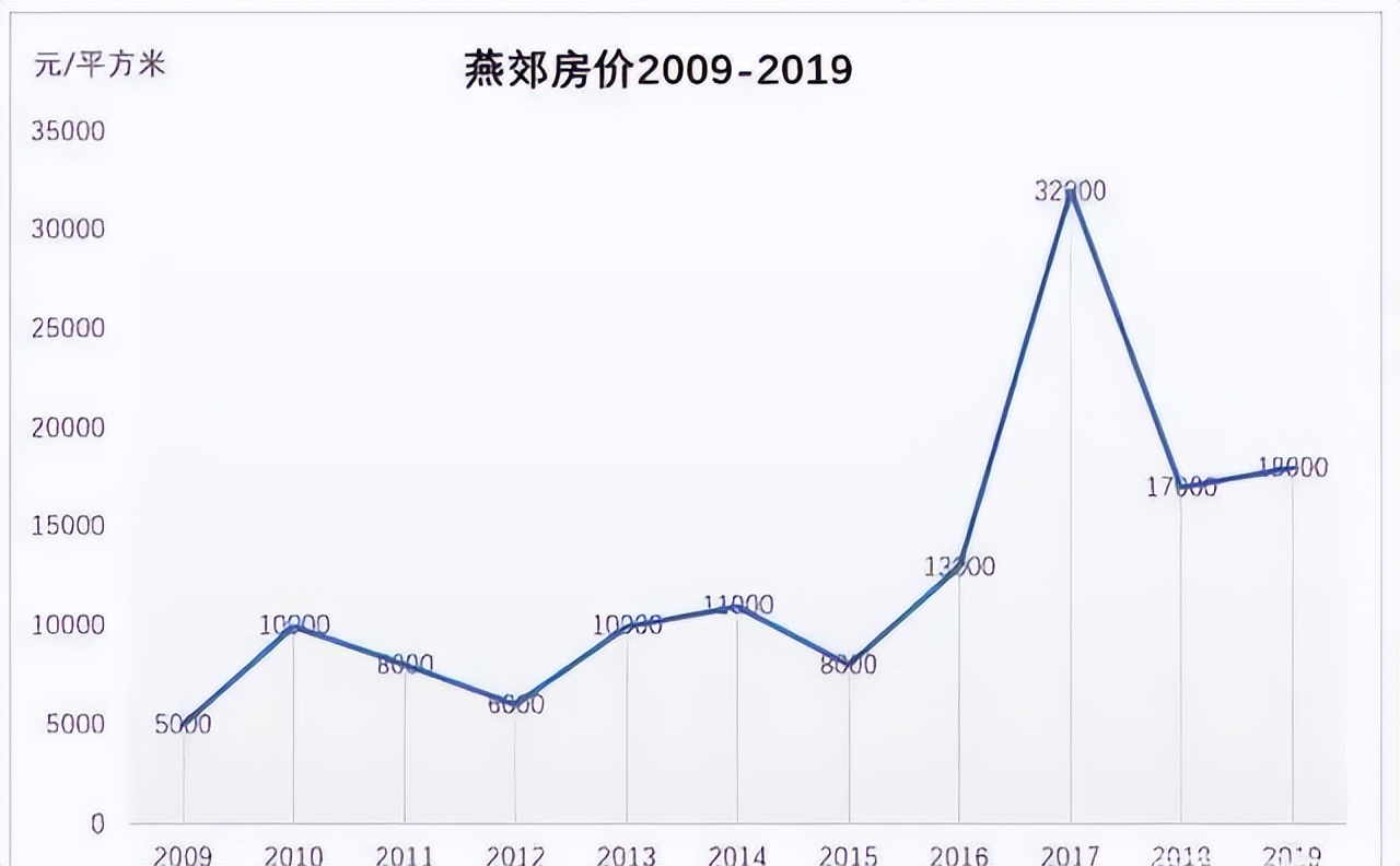 2014年,燕郊房价第一次突破万元大关,比2009年翻了一倍,2016年,通州被定为北京城市副中心的消息传来,加上“燕郊要通地铁”的传言疯传,楼市彻底被点燃。