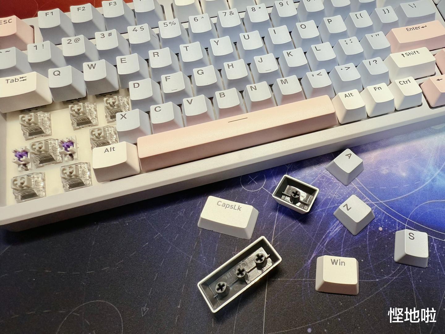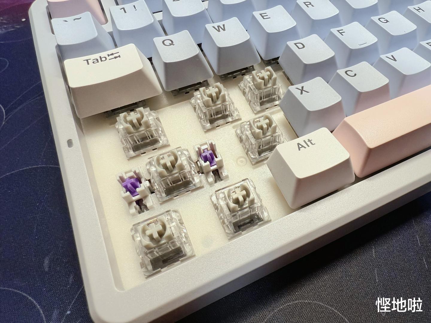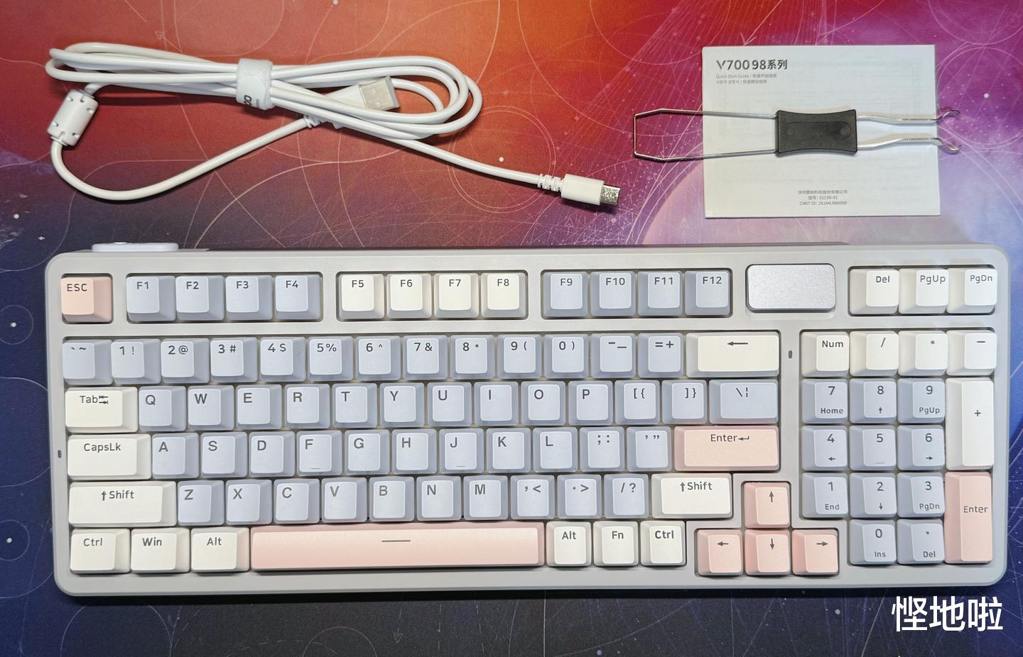 PO主这款V700 DIY-98键盘的配色方案是【莫奈仙踪】,粉红/粉蓝/白的少女心配色可盐可甜,十分适合女生使用。