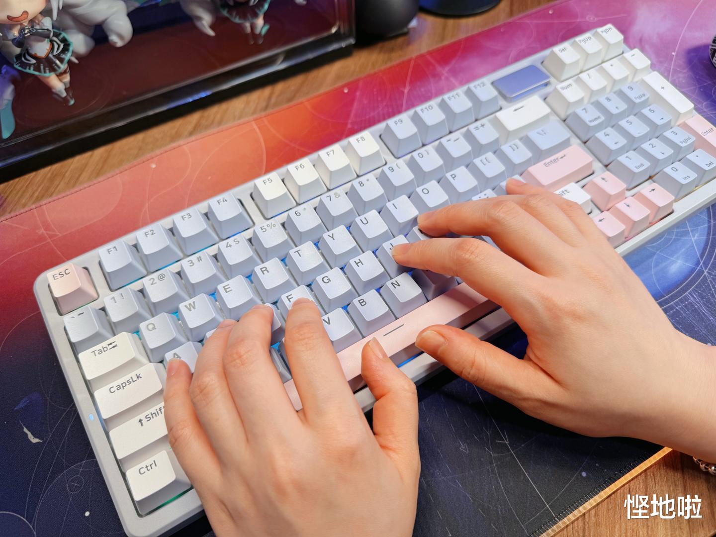 而且快银轴触发行程短,线性轴体手感顺滑高回弹,直上直下特别丝滑,适中的压力就算长时间码字都不会让手指发酸。在游戏方面,快银轴的短行程+防误触+高回弹优势能进一步提升FPS游戏体验。