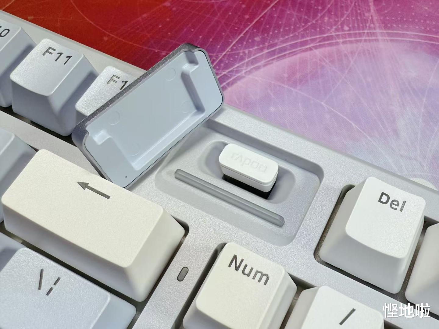 对于不少客制化玩家来说,买回来的客制化键盘就是用来魔改的,不过雷柏这款客制化键盘基本配置也不低,轴体采用凯华定制的快银轴,尽管现在市面上各种轴体层出不穷,不过快银轴作为知名的经典轴体在DIY玩家圈里口碑还是很不错的。