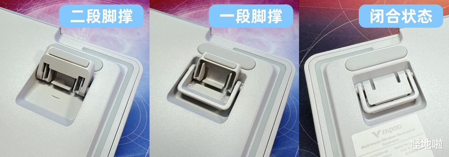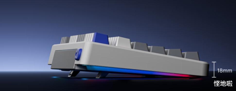 而且多种填充材质组合在消音止震方面有更出色的表现,能避免各种拉丝声及杂音,按键音更HIFI,板簧式结构也能让键盘使用时共振更小。就个人使用体验而言,PO主会更喜欢带脚撑的键盘,根据使用场景能方便调整高度,这款键盘有2段脚撑可调,前高拥有18mm。