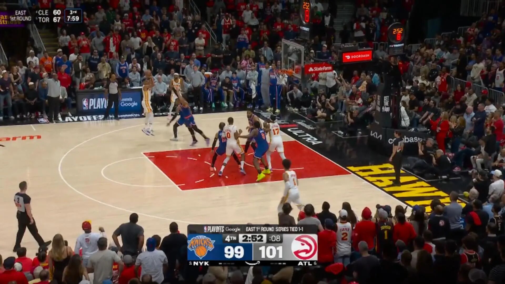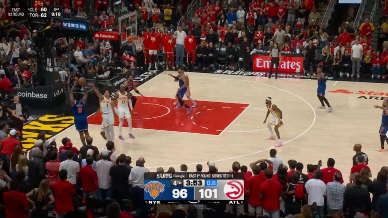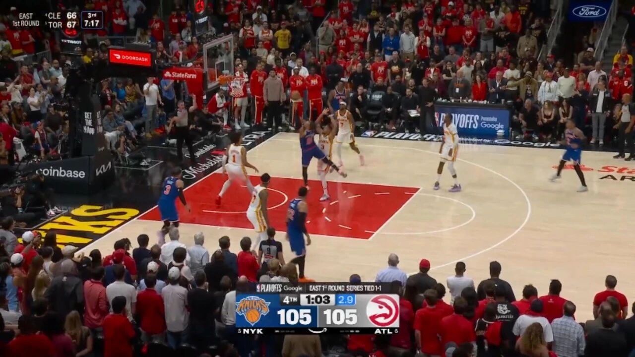 关键时刻,阿奴诺比和麦克布莱德连续命中三分、布伦森关键上篮打进,剩下1分钟前,尼克斯反而以108-105反超老鹰,看起来,老鹰G2的剧本似乎要被G3的尼克斯拿到了。