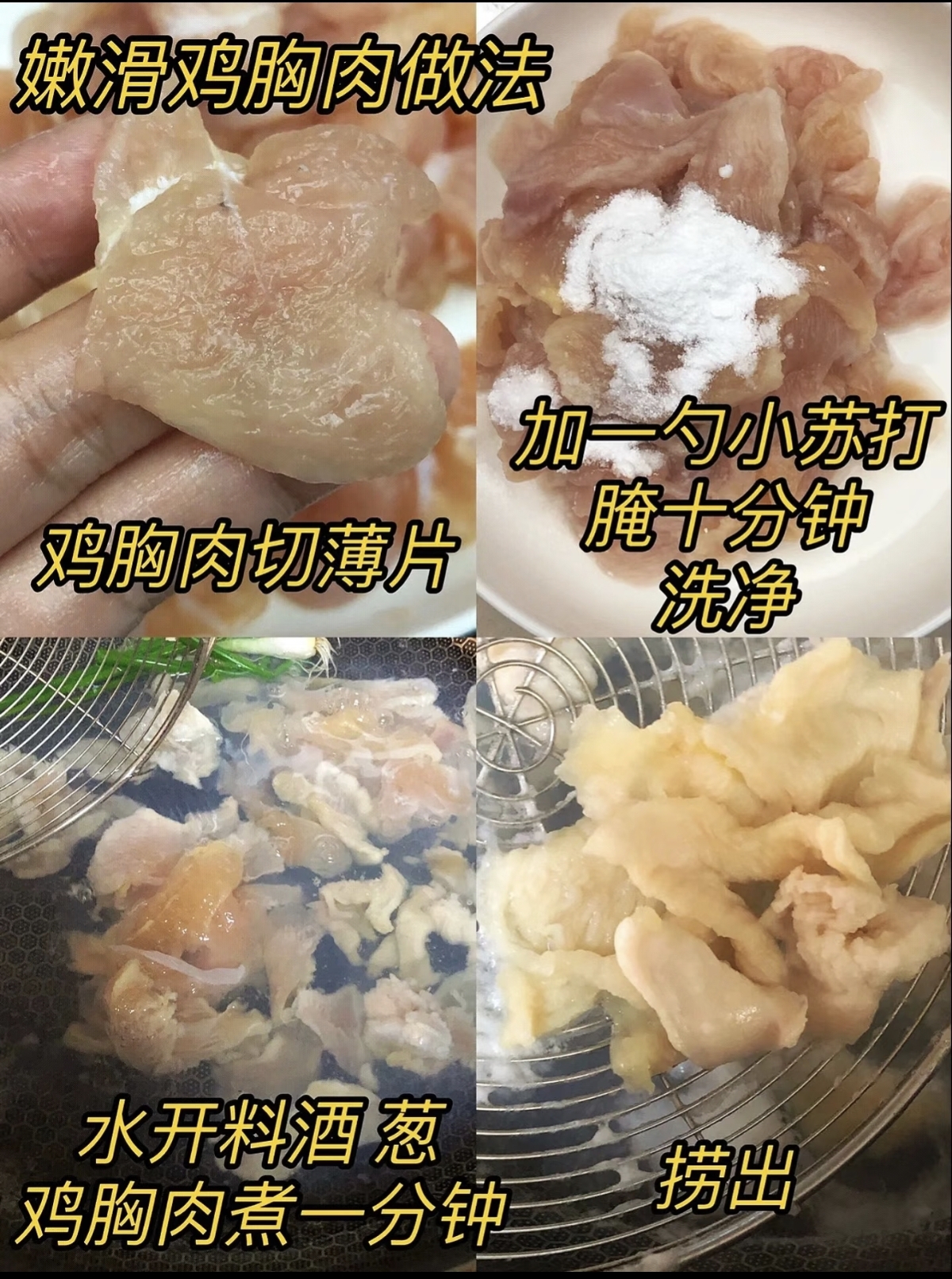 这道菜的灵魂,首先在于鸡胸肉的处理。很多人觉得鸡胸肉柴,不好吃,其实是没有掌握正确的方法。我们选用一块新鲜饱满的鸡胸肉,冷水下锅,加入几片姜、一段葱和少许料酒,大火煮开后撇去浮沫,转中小火煮8-10分钟。这里有个小窍门,用筷子能轻松扎透且没有血水渗出,就说明熟度刚刚好。煮好后千万不要直接捞出来,让它继续在汤汁里浸泡10分钟,这样鸡肉会吸饱水分,变得异常嫩滑。捞出后,顺着纹理撕成细丝,这样更容易入味。