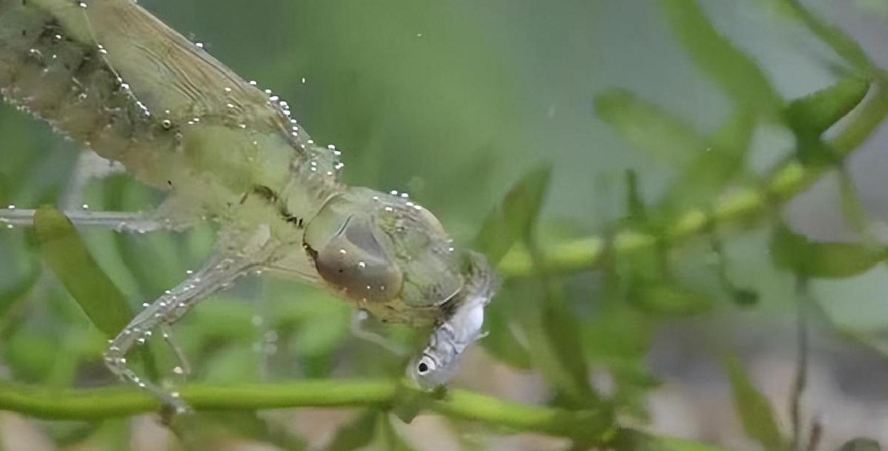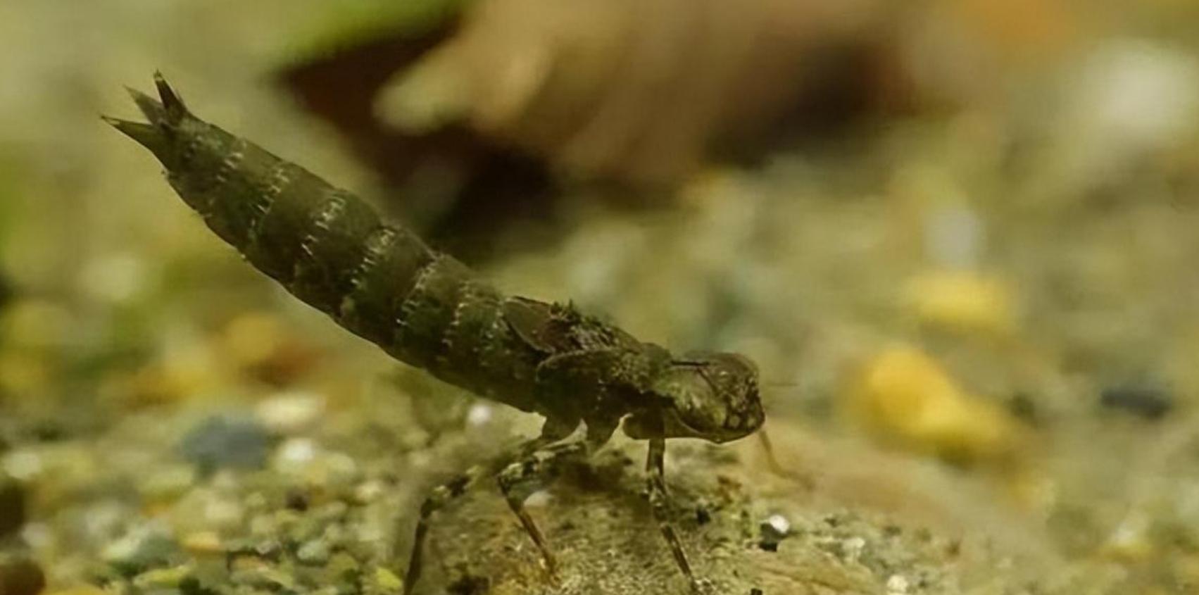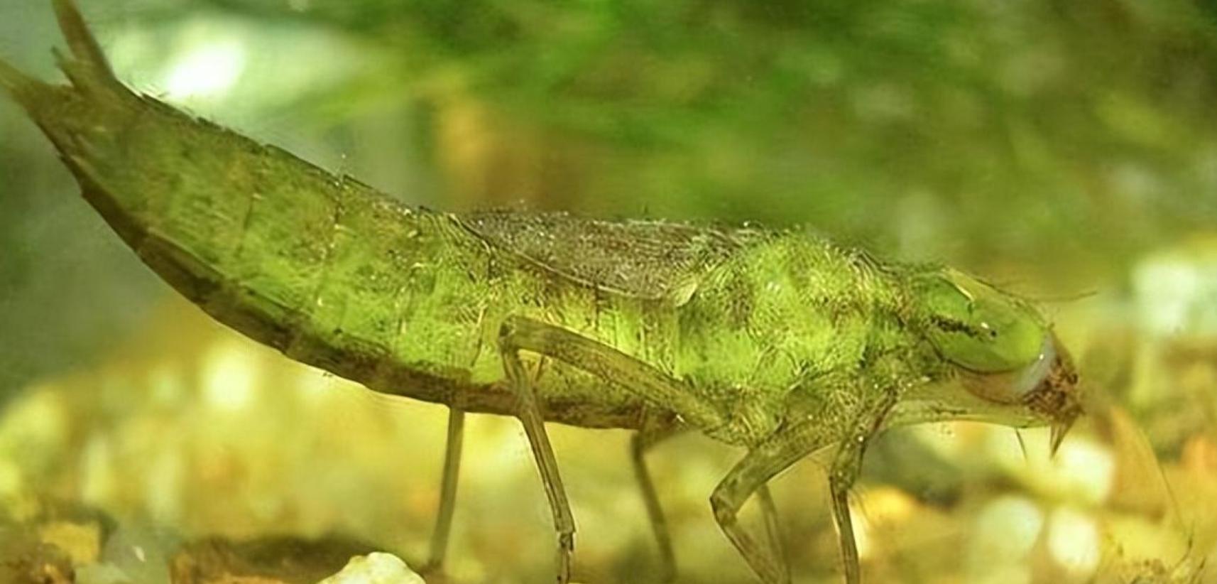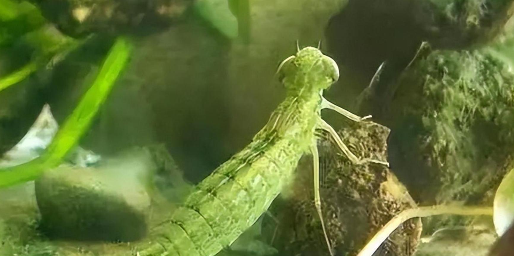 当水虿经历过一次蜕变之后,就会成为我们熟知蜻蜓的前身,但是没有翅膀,看起来像螳螂一样。
