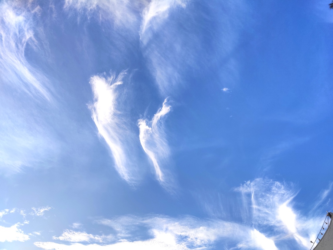 小时候总觉得云都一样,白白软软的。那天才发现,没有两朵云是相同的:有的像被扯碎的棉絮,有的边缘镶着金边,有的飘着飘着突然变了形状,像在跟你玩捉迷藏。
