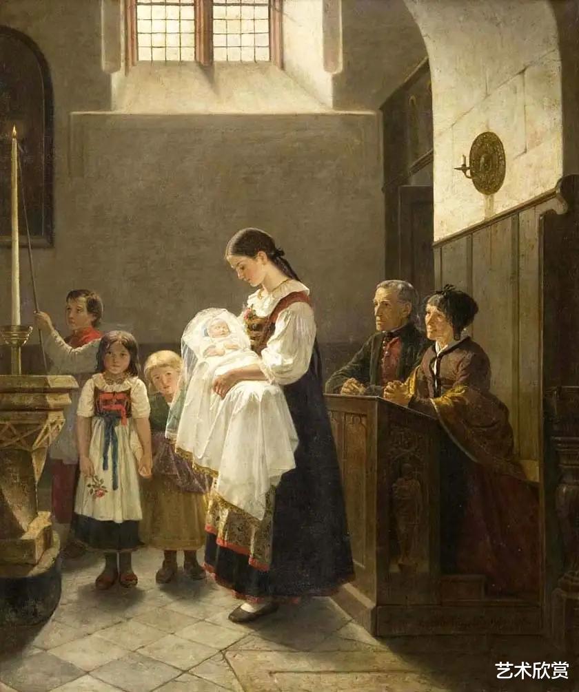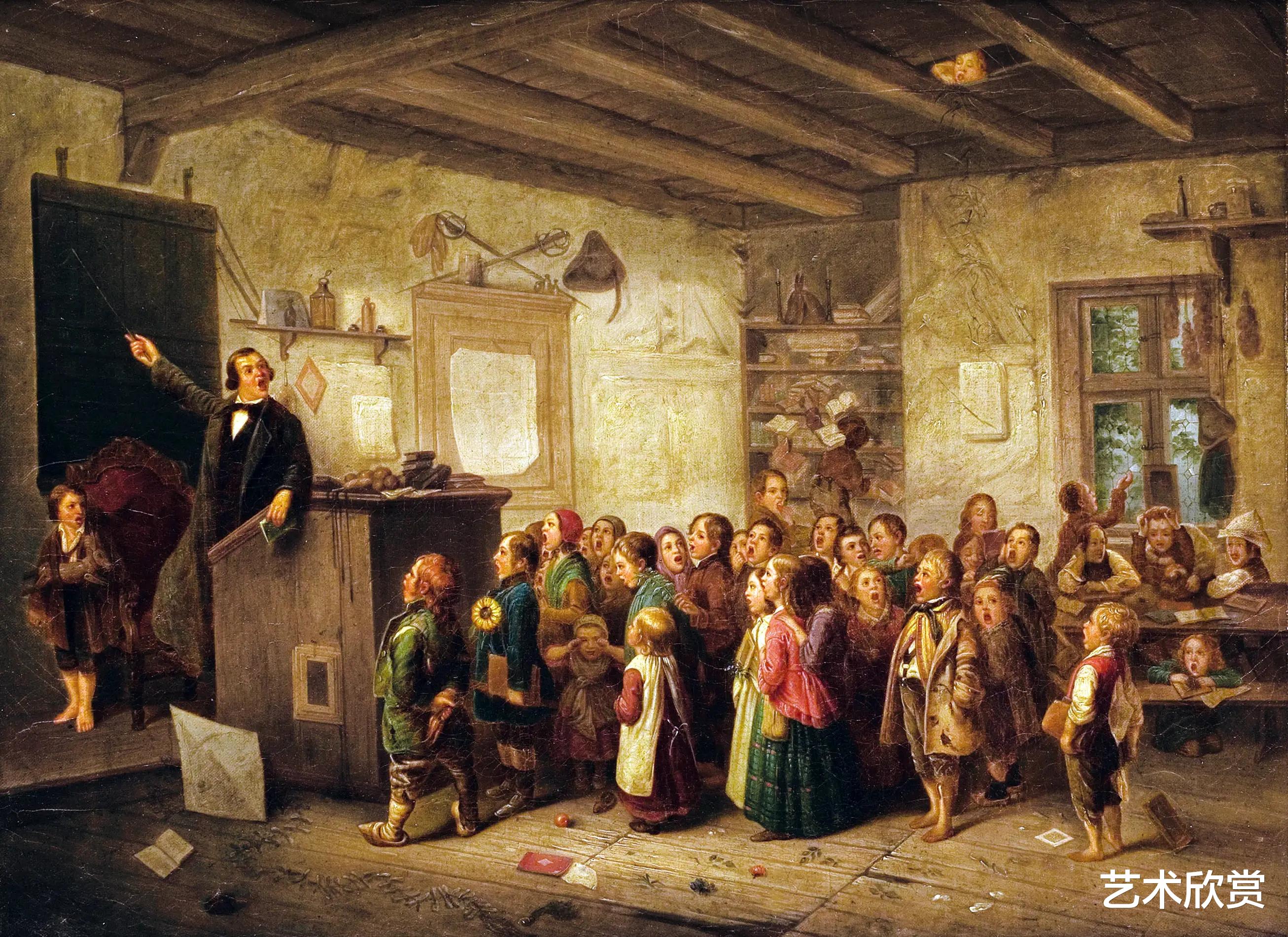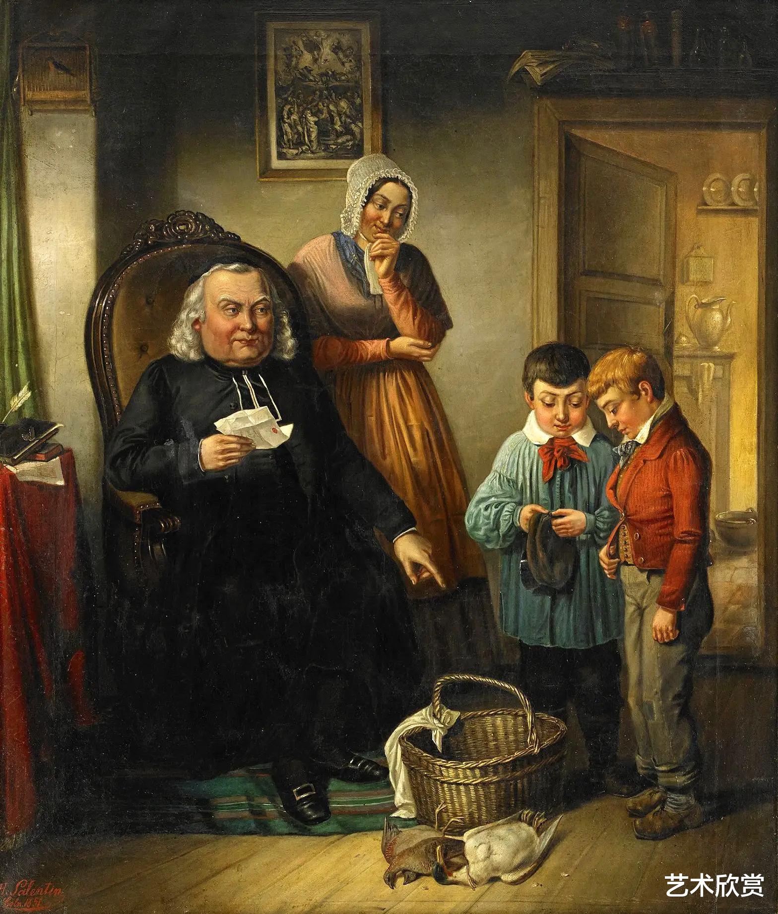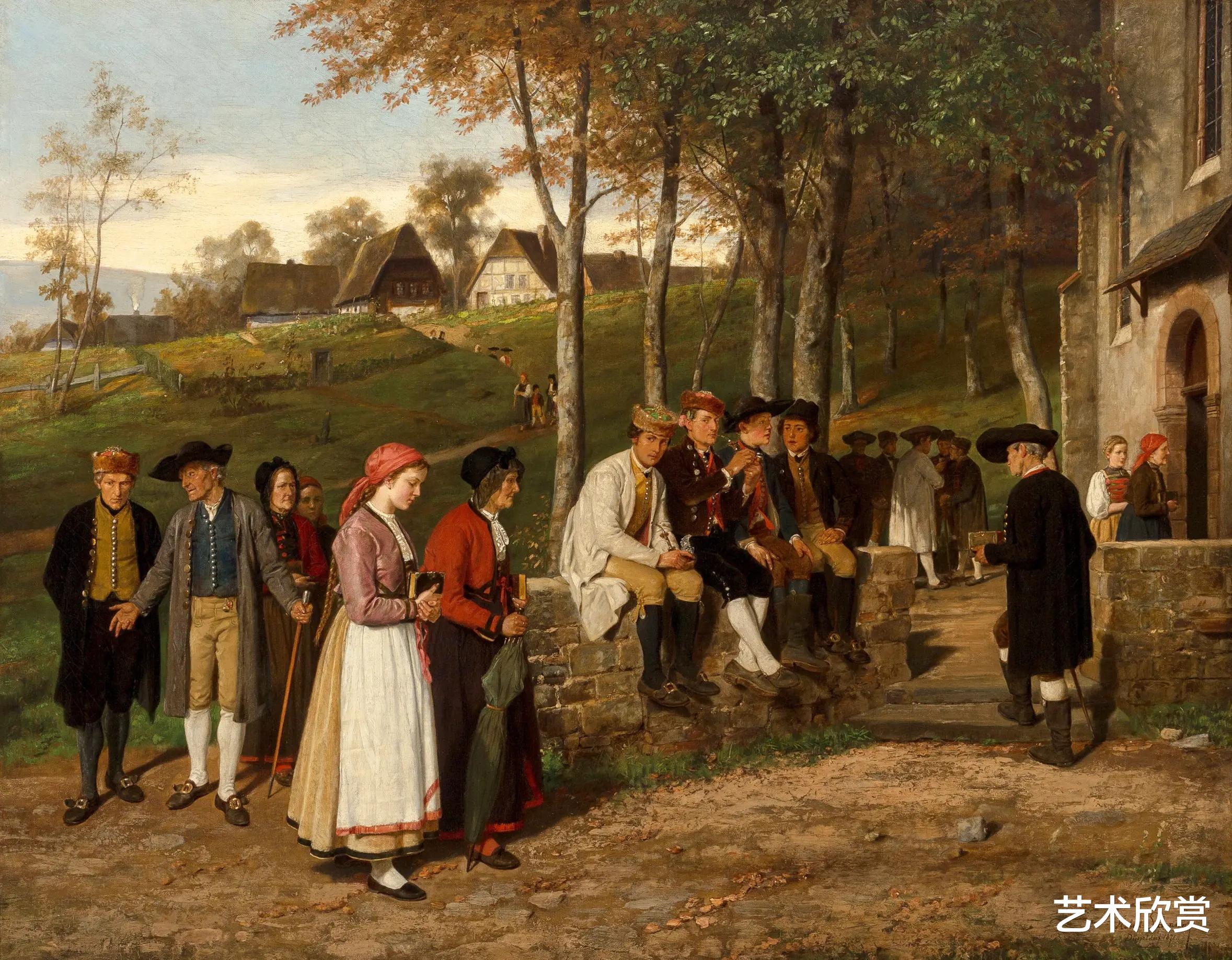 Salentin从不追求宏大的历史叙事,他更爱蹲在村口酒馆的角落,观察醉汉拍桌大笑、妇人交换耳语。在《乡村婚礼》中,乐手的琴弓歪斜,孩童钻过桌底偷捡糖块,宾客的微醺与局促被勾勒得鲜活淋漓。有人说他的画是“市井的镜子”,照见旧时代德国最本真的呼吸。