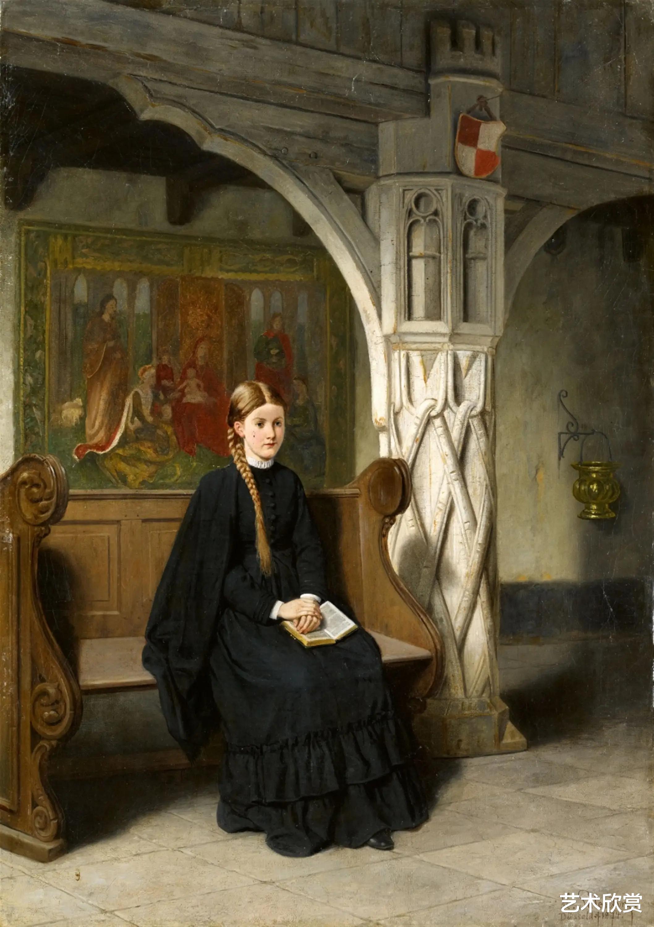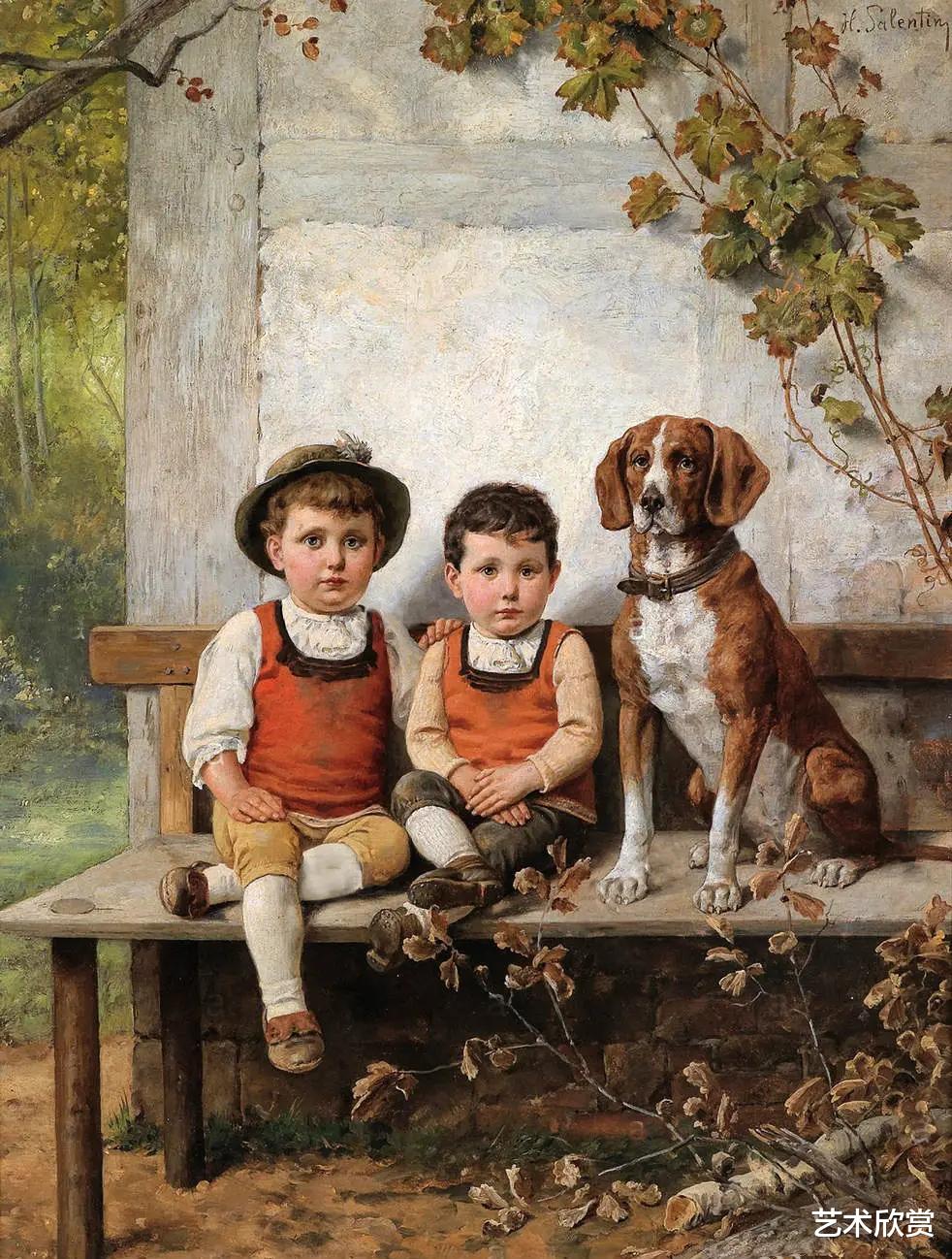19世纪的莱茵兰乡村,农舍的炊烟与市集的喧嚣交织成画。Hubert Salentin的画笔总在捕捉这些平凡的瞬间,将琐碎日常升华为永恒的诗意。他的《老妇人纺纱》里,阳光斜斜地爬上斑驳的砖墙,老妇人手中的纺锤仿佛凝固了时间。粗布裙摆的褶皱、木地板的裂痕,每一笔都浸透对生活的凝视。